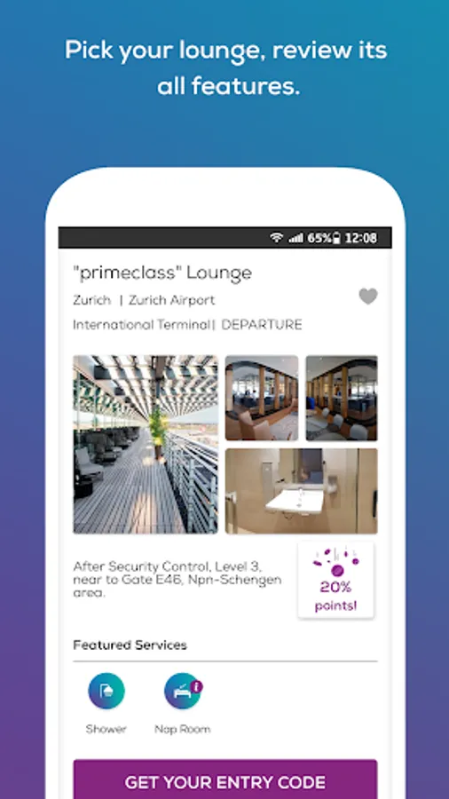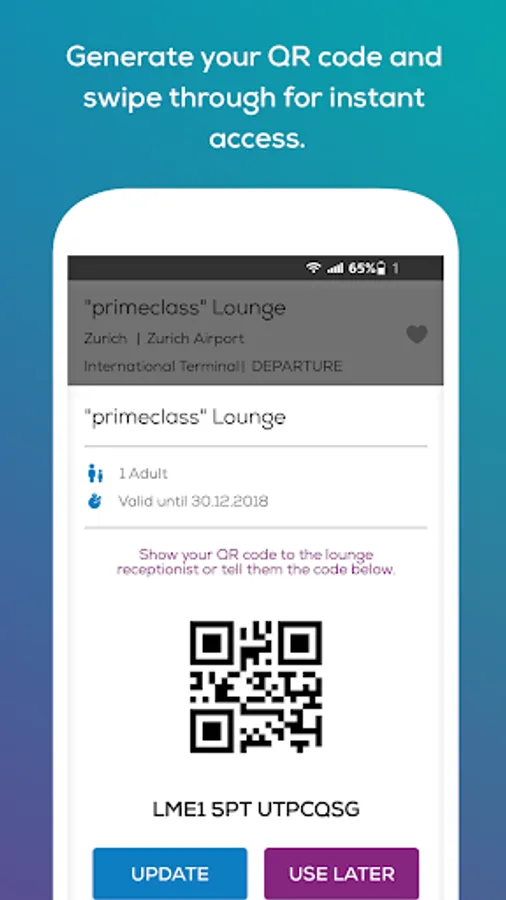 Download our mobile app, discover lounges and view their features. Pick your lounge, generate your QR code and swipe through for instant access.