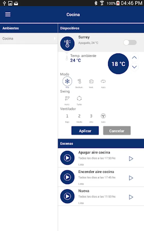 - Set a scene for it to run at a desired time, such as "it is turned at 18 ° C in 24 hours on weekends.".