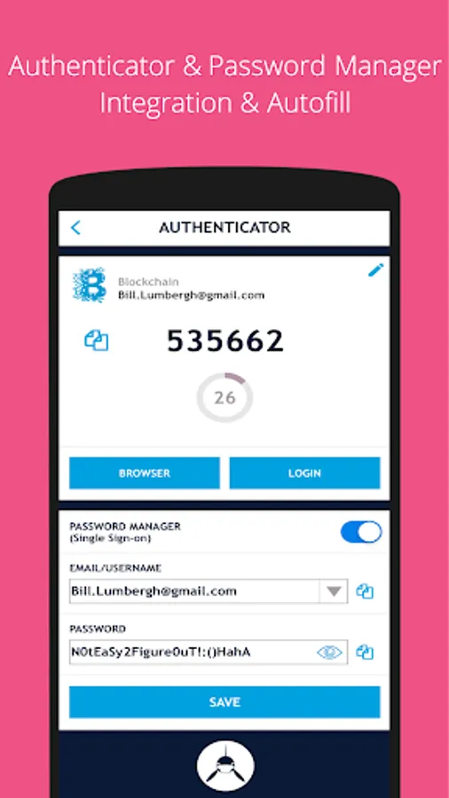 SAASPASS brings the future of security to Android by seamlessly merging both the Password Manager and 2FA Authenticator codes in a single app with all the security precautions balanced with extreme usability.