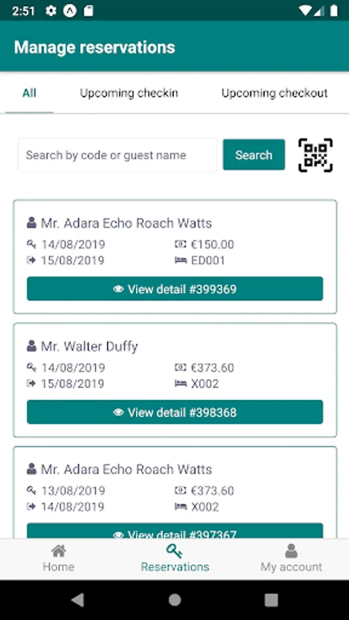 • Quickly open a reservation by scanning reservation QR code: this allows a much faster check-in procedure where the staff only need to scan the QR code printed on the guest reservation voucher and the reservation will be opened automatically in your app. There is no need to search by reservation code or guest info like before.