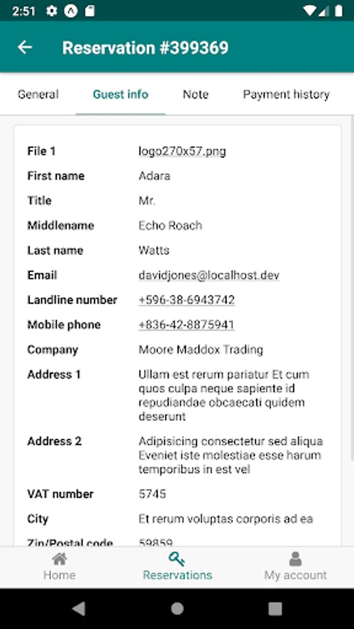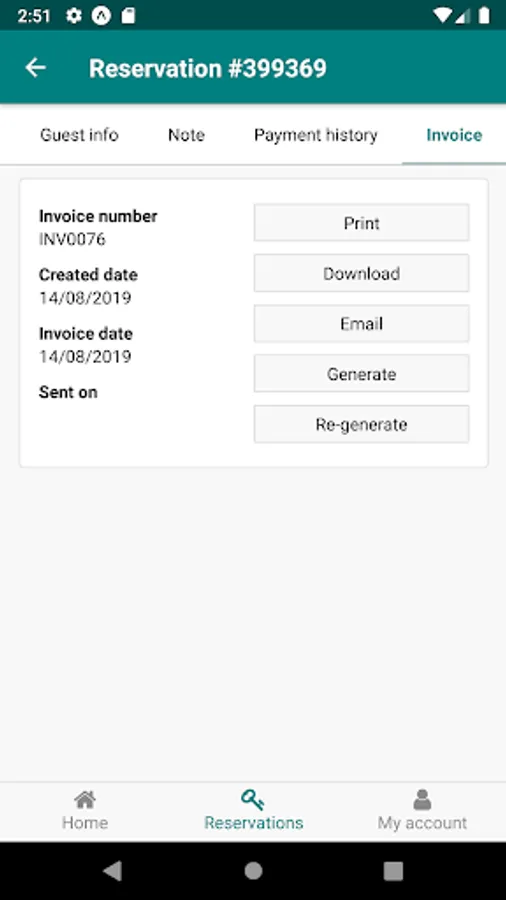 • Reservation management tasks (check-in guest, check out guest, add a note, manage invoice, change reservation status and payment status, manage payment history and reservation note).