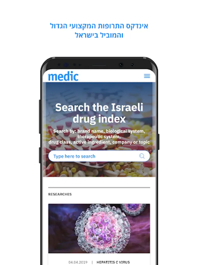 The medical medical index provides easy, fast access to the most reliable, up-to-date and comprehensive information about all the drugs that are registered in Israel.