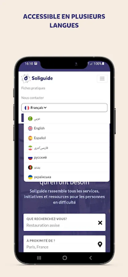 Soliguide is completely free and available in several languages to facilitate your search. Don't wait any longer, explore Soliguide now and find the solutions that will help you overcome the difficulties you encounter.