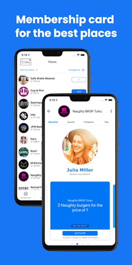 Cluby is a membership card for the best places in your city - such as bars, cafes, restaurants, nightclubs and barber shops.
