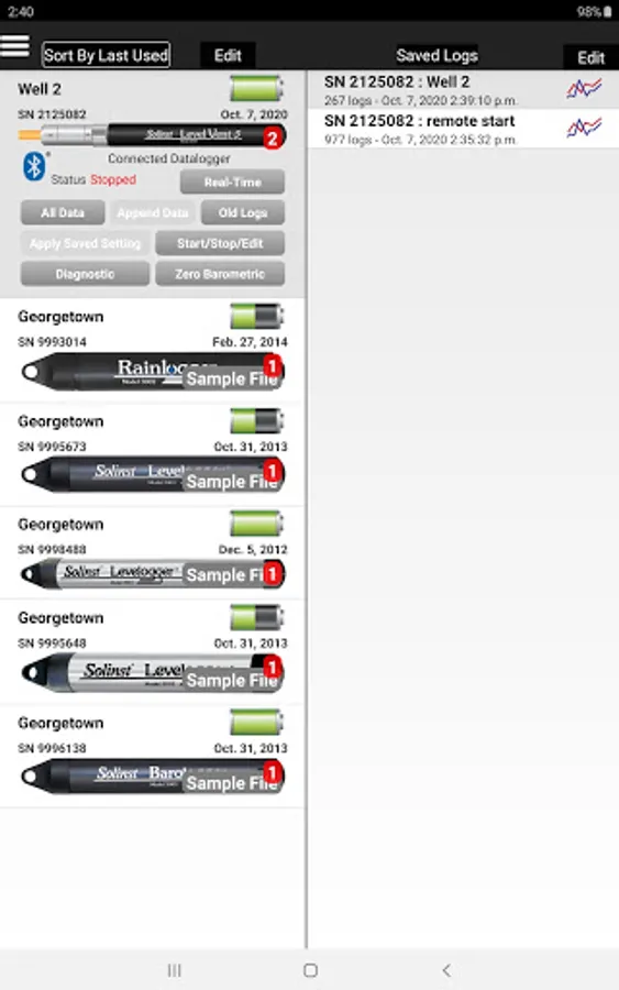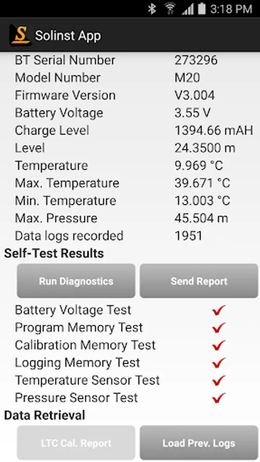 Run complete datalogger diagnostics tests using the Levelogger App’s diagnostic utility for all of your Solinst dataloggers.