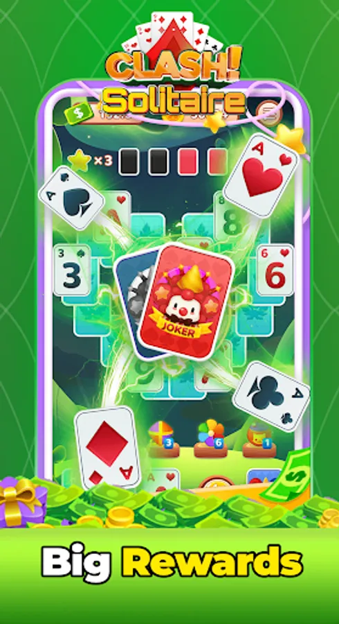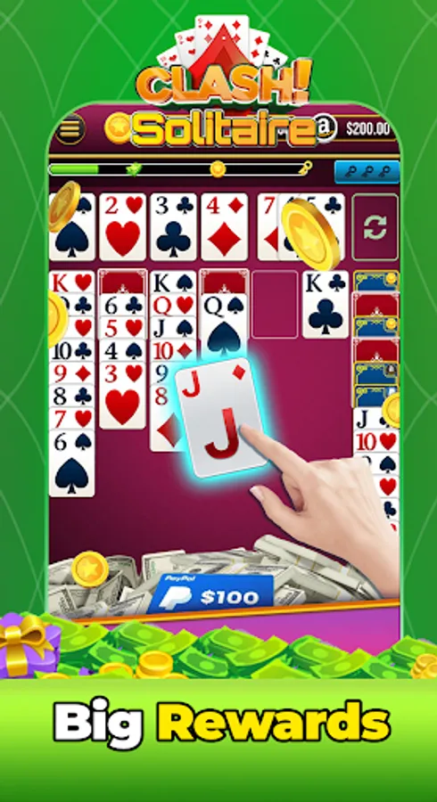 Solitaire Clash game with rewards feature, playable on mobile. Fans of Clash Solitaire and other poker card games will enjoy playing this mobile game as it allows you to take advantage of the card playing hobby to win money without the risk of spending or losing money.