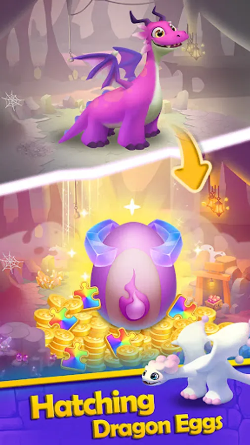 Whenever you get a new dragon egg, you don't know what the dragon inside is. Let the witch use magic to speed up hatching. Get more kinds of dragons from dragon eggs!