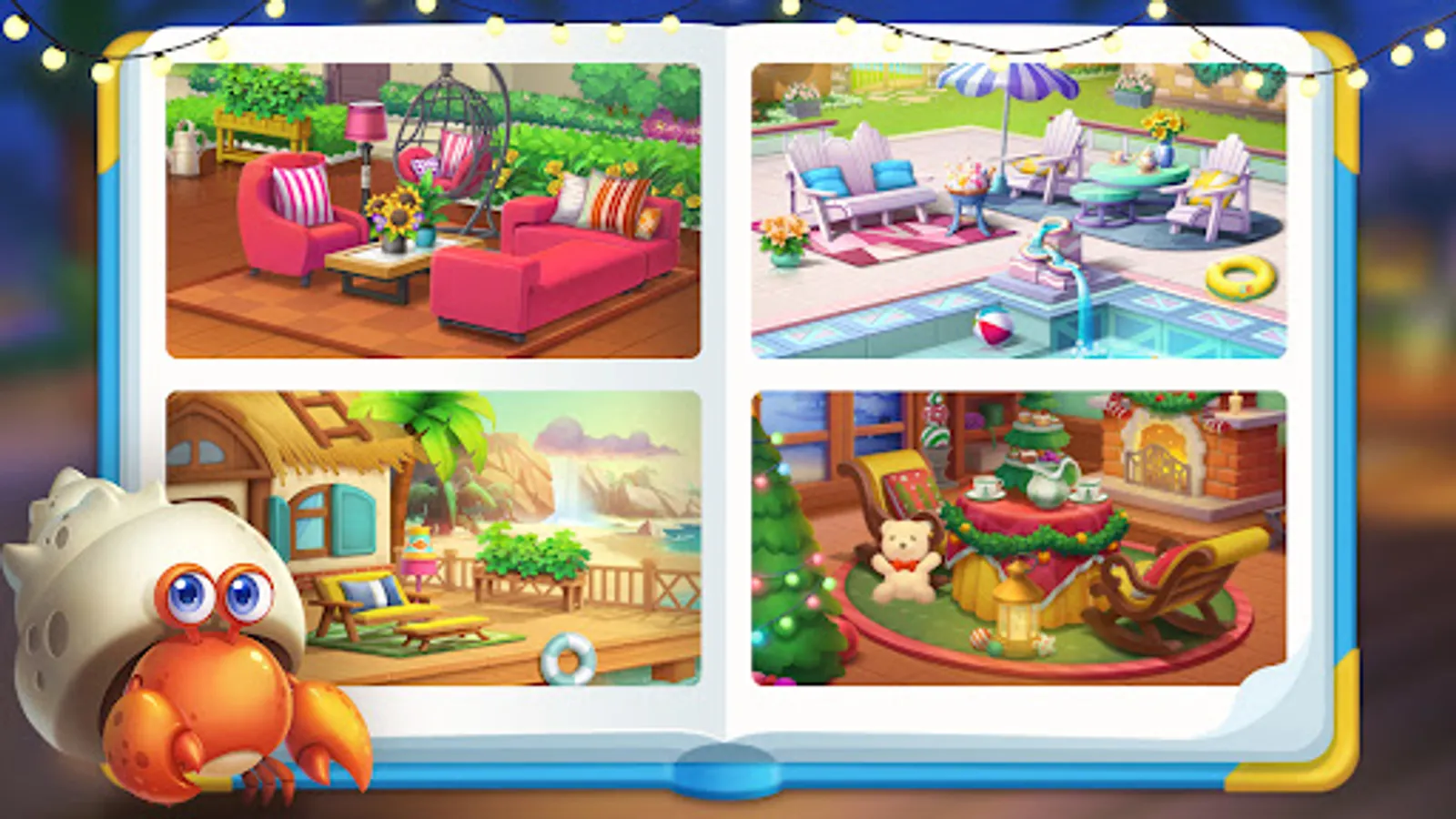 Each garden scene is filled with cute animals, such as the hermit crab, blue peacock, raccoon, etc. All animals look surprisingly realistic with vivid animations. You will surely enjoy their company!