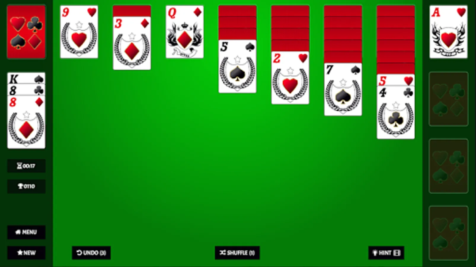 Play cards just with a single tap, using in game options like undo move, shuffle cards or move hint you have real chances to WIN THE GAME!