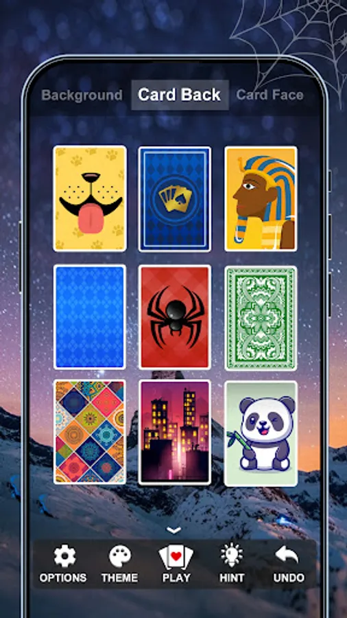 We have Multiple kinds of card faces & card backs & backgrounds that differ from traditional solitaire style to cartoon style, from pet to flower, and from Egypt pharaoh to Chinese panda. You can customize the deck and board of your spider solitaire game!