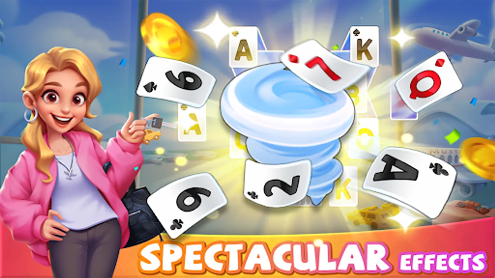 On this free and romantic journey, you will solve exciting card solitaire puzzles, overcome challenges to earn coins, venture through different settings, refurbish Carl's friends' territories, and gain additional boosters to continue your travel legend. You can also enjoy timed events like Poker King, Garden Treasure Hunt, Summer Fountain, and win exciting rewards for your achievements.