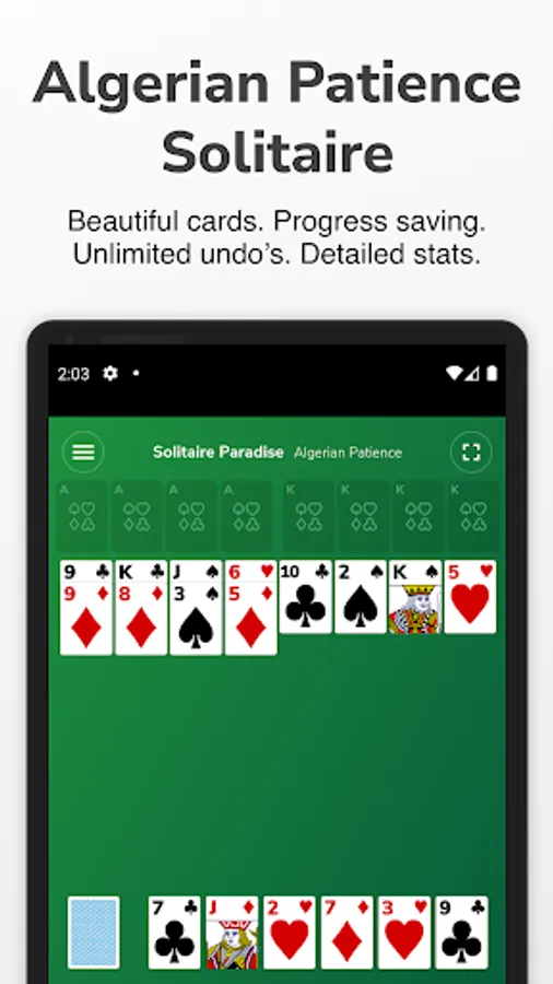Algerian Patience Solitaire is a beautiful and modern adaptation of the classic Algerian Patience game, using the traditional rules and gameplay.