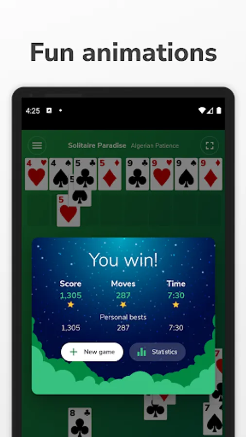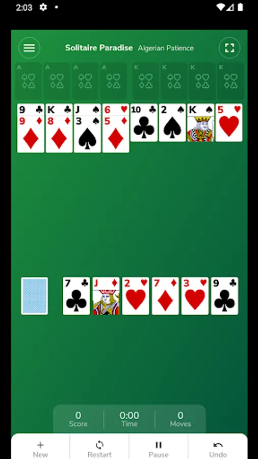 Algerian Patience Solitaire can be played by players of all skill levels. The in-game instructions explain the game rules in detail.