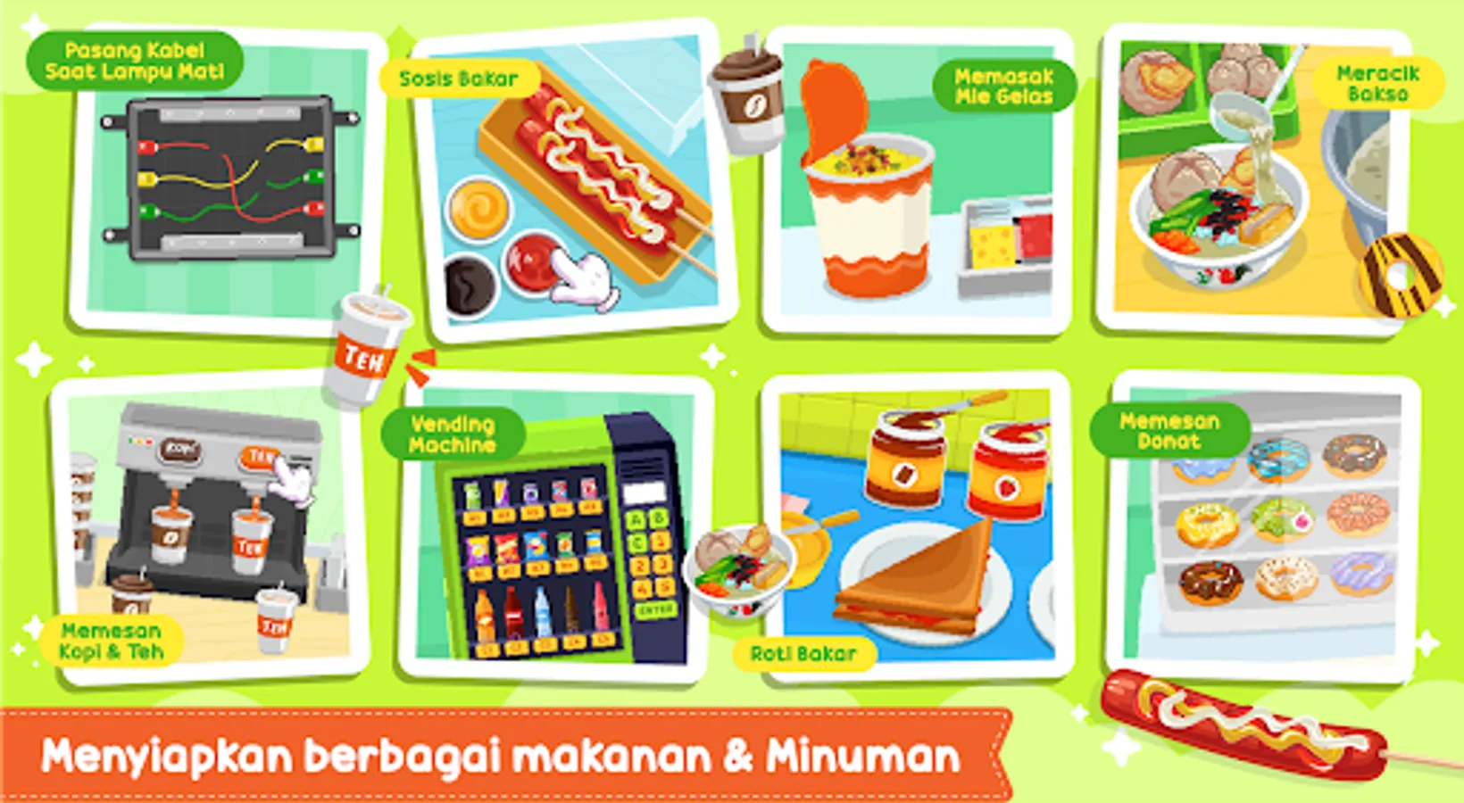 Simulation game of being a supermarket manager for Indonesian children. There are many things in supermarkets that you can buy.