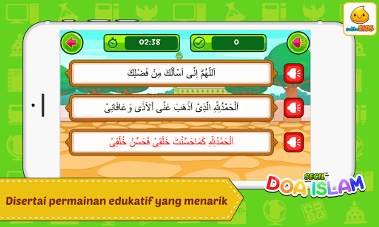 The Learning Mode in this application is equipped with pictures and sounds that will help children memorize Islamic prayers. The concept of learning in this Islamic prayer learning application is designed interactively with interesting games and interesting sounds so that children don't get bored while playing.