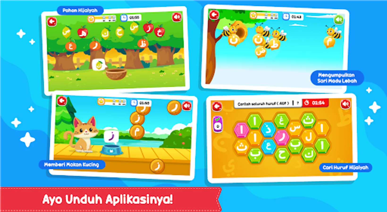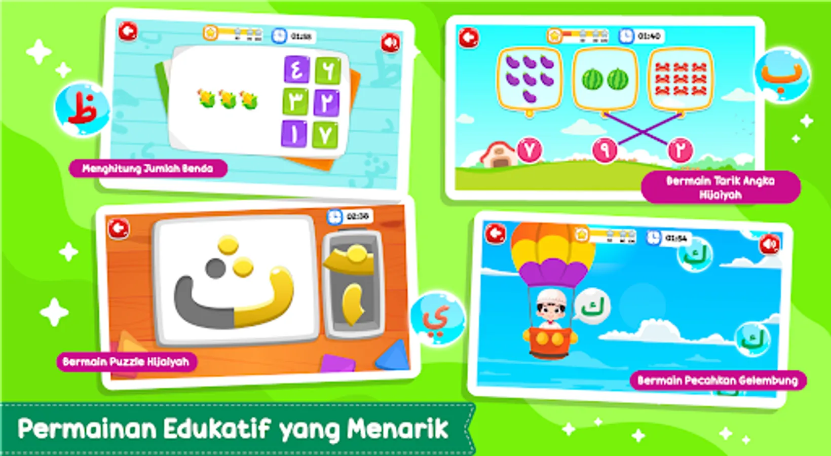 In this game, children will learn to recognize hijaiyah letters from alif, ba', ta', tsa' to yes'. The learning concept in this application is designed interactively with interesting games and interesting sounds so that children do not get bored while playing.