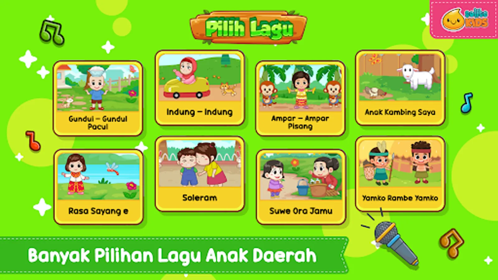 Regional Children's Songs is an application that contains Indonesian folk songs. With this advanced era, Indonesian folk songs have begun to be forgotten. With this application, it can help our children learn Indonesian Regional Songs