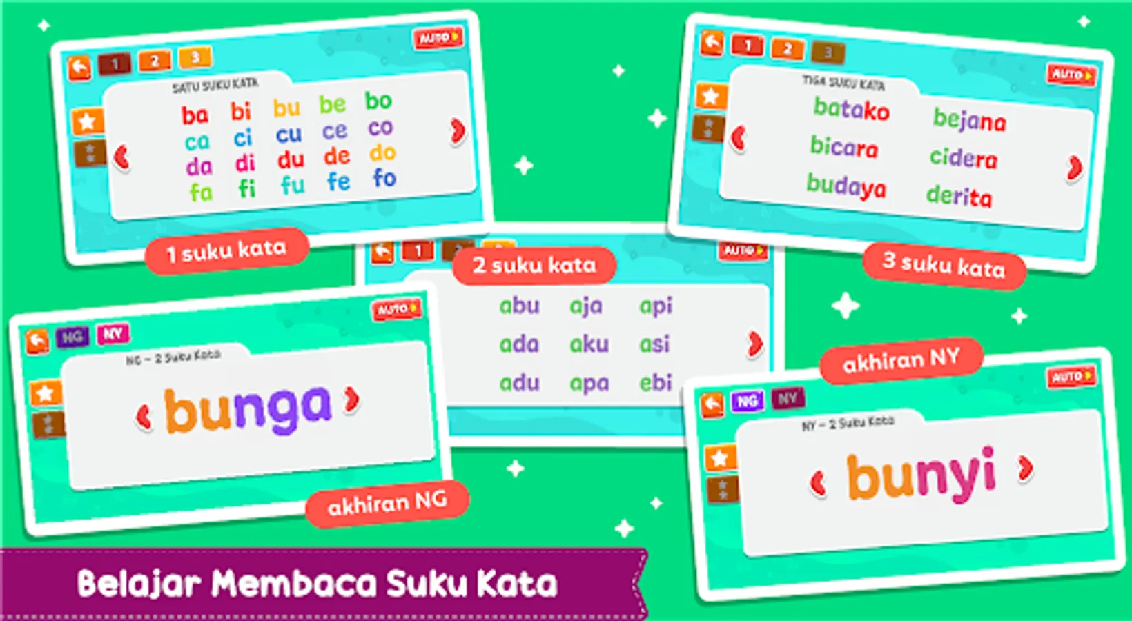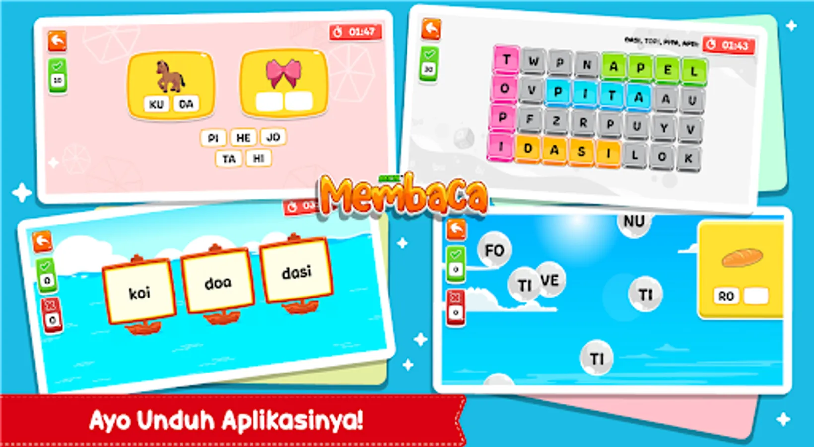 The concept of the method of learning to read in this application is designed interactively with interesting games and interesting sounds so that children don't get bored while playing.