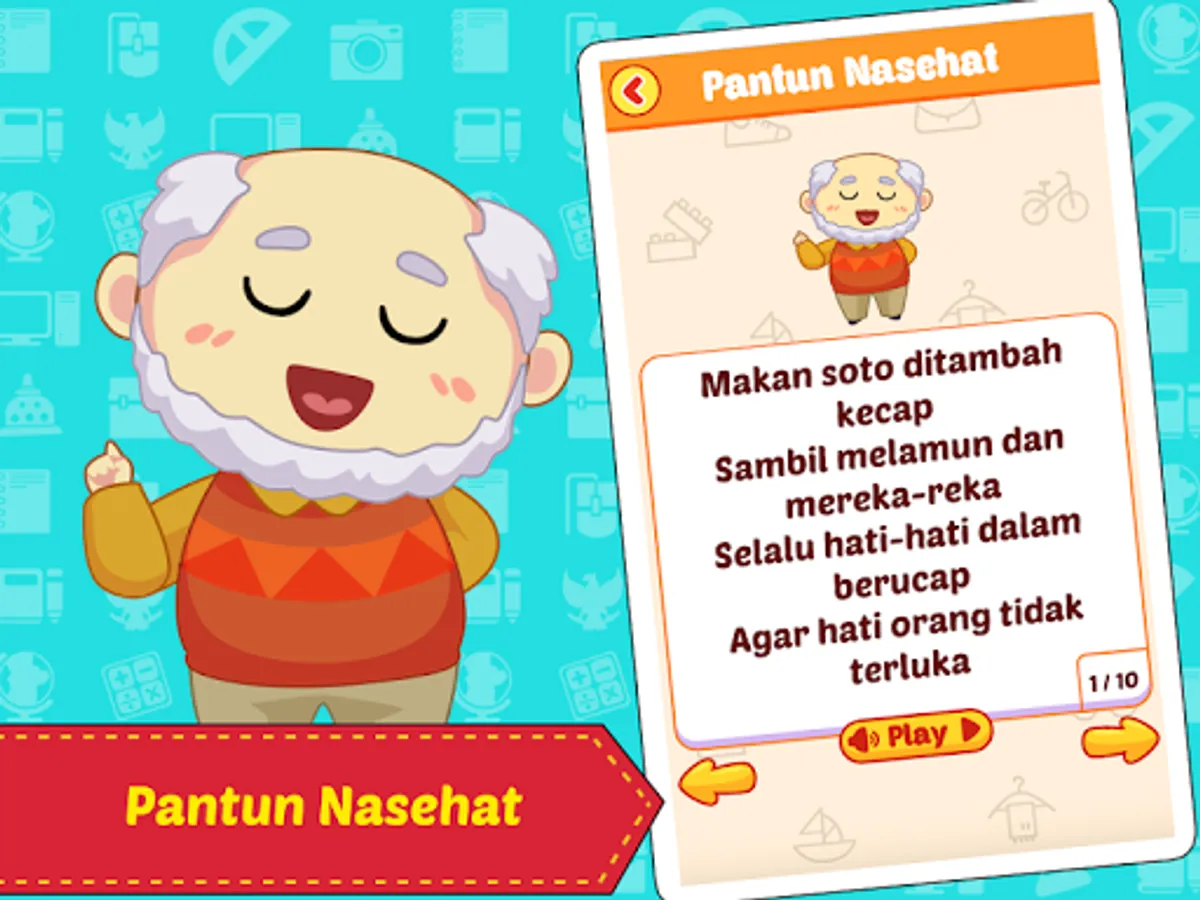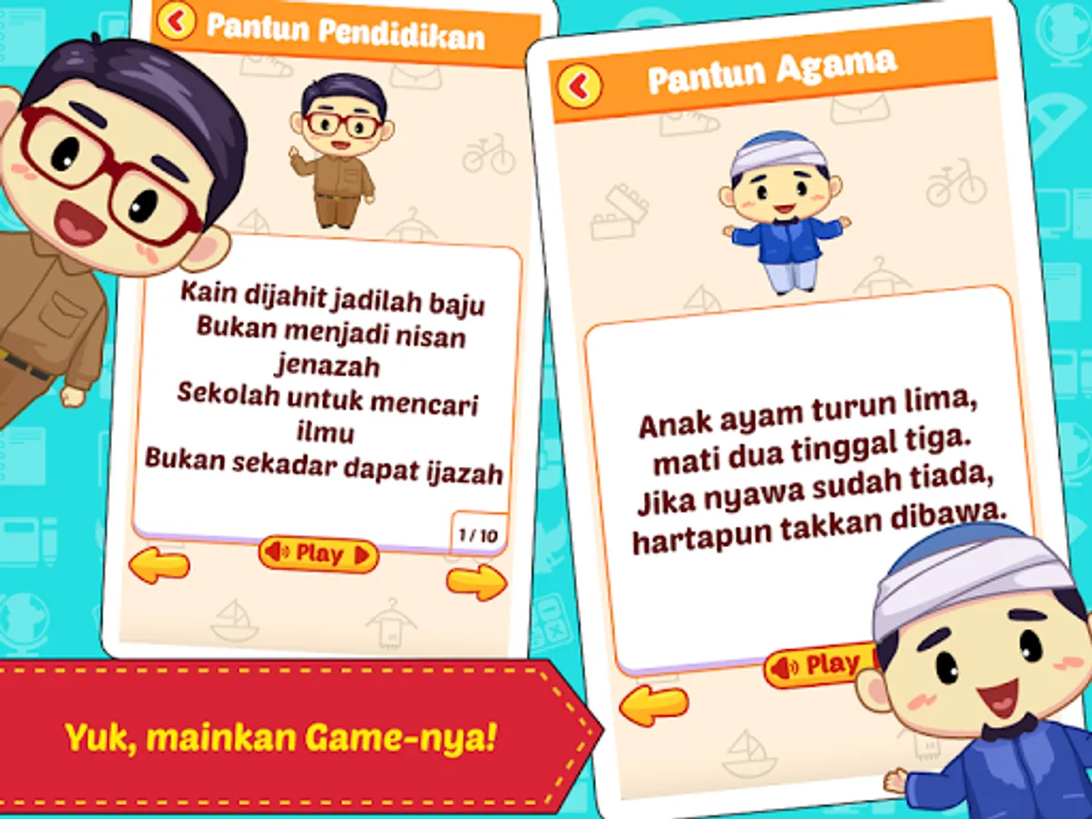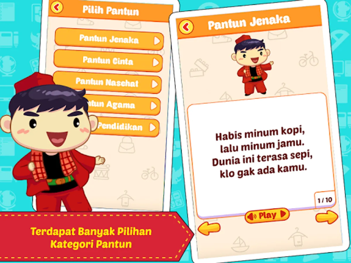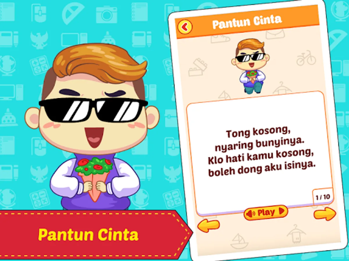 Learning Pantun is also called Learning Poetry is a Children's Educational Application Series that is created to help children learn pantun easily and pleasantly.