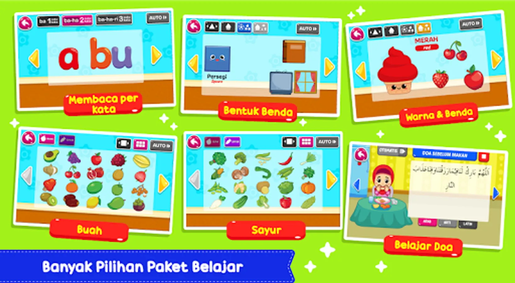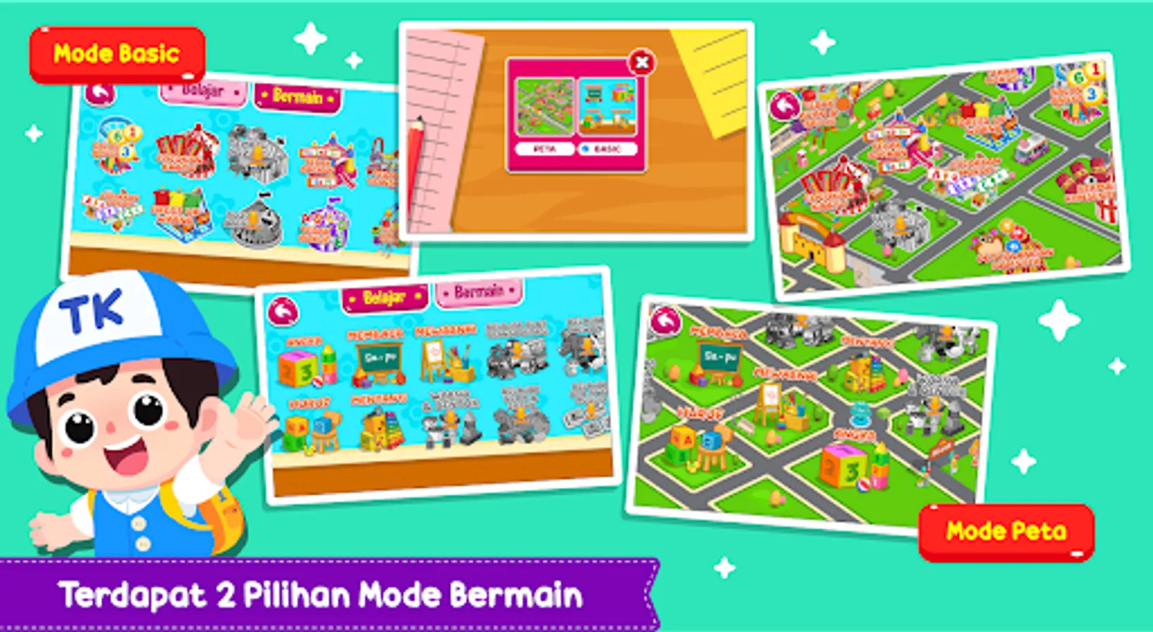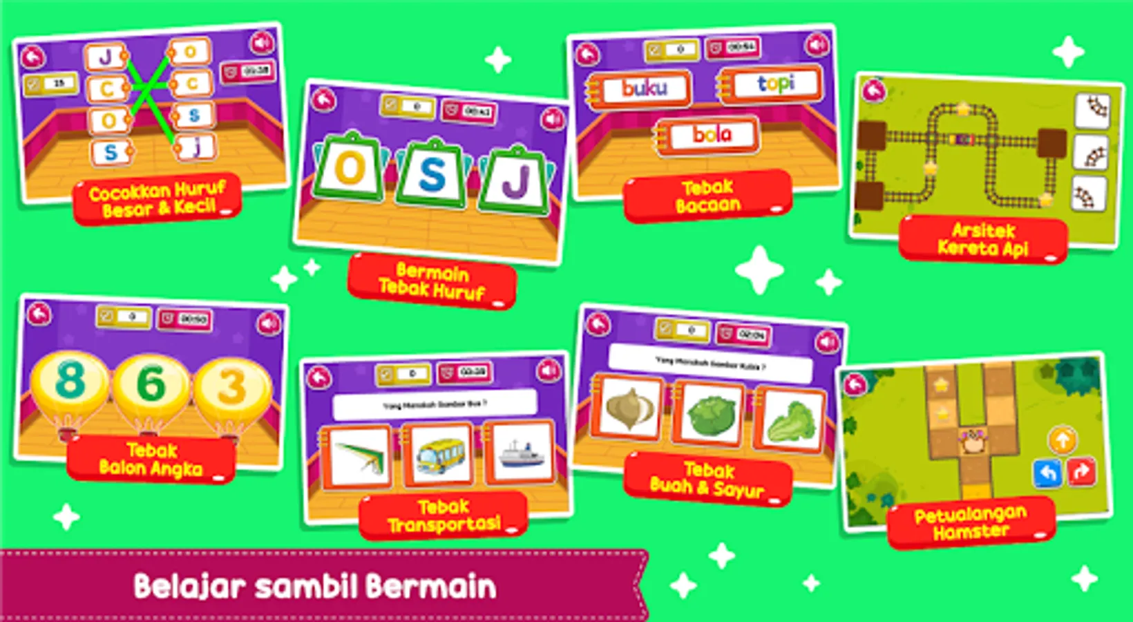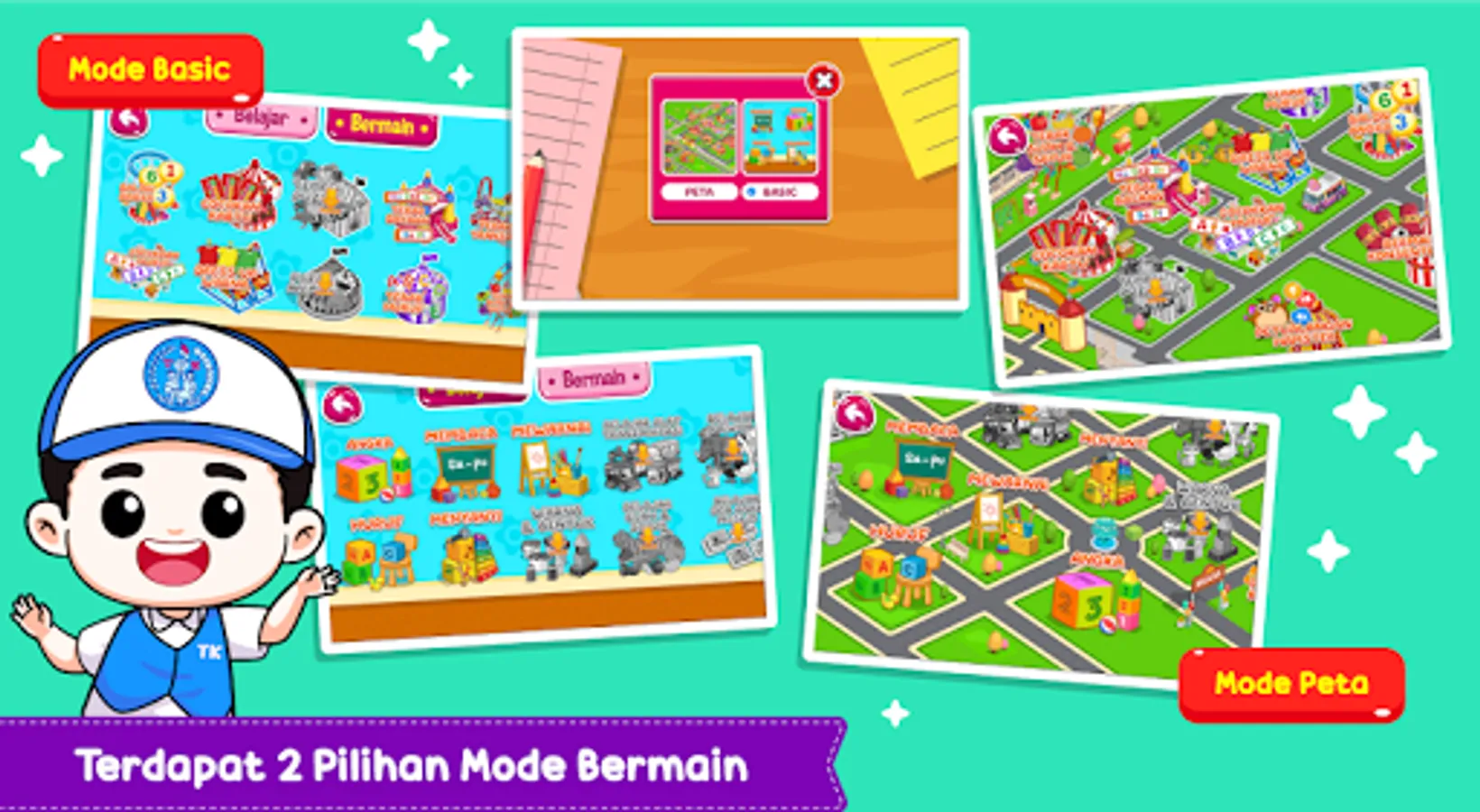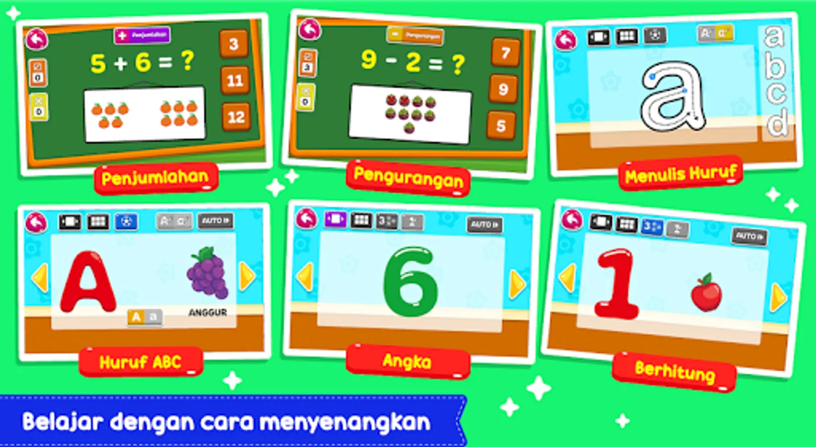 In the Complete Kindergarten and Early Childhood Learning Application, children will learn to recognize letters and recognize numbers as well as about other kindergarten and early childhood lessons. The learning concept in this application is designed interactively and is accompanied by interesting games and sounds so that children don't get bored while playing.