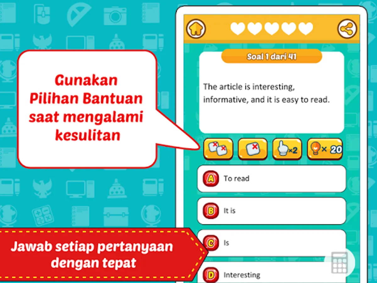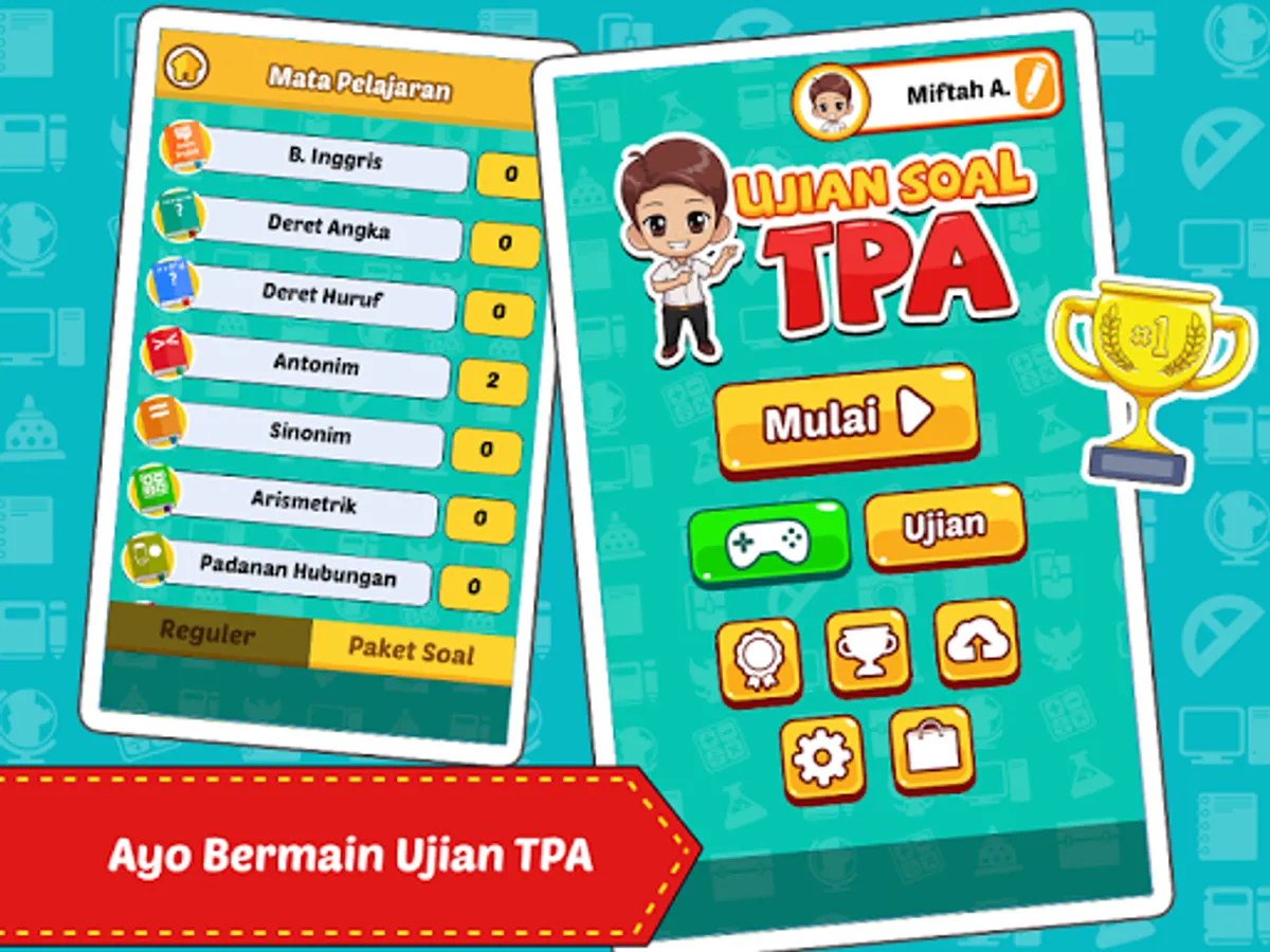 Soal Ujian TPA Psikotes adalah sebuah aplikasi pendidikan yang berisi kumpulan soal-soal ujian TPA dan ujian Psikotes. Dengan aplikasi ujian TPA dan Ujian Psikotes ini anda dapat berlatih mengerjakan soal-soal psikotes baik untuk persiapan ujian masuk kerja maupun ujian masuk kuliah SNMPTN dan juga ujian beasiswa LPDP. Aplikasi ini dilengkapi dengan permainan interaktif yang menarik sehingga pemain dapat belajar dengan cara yang menyenangkan.