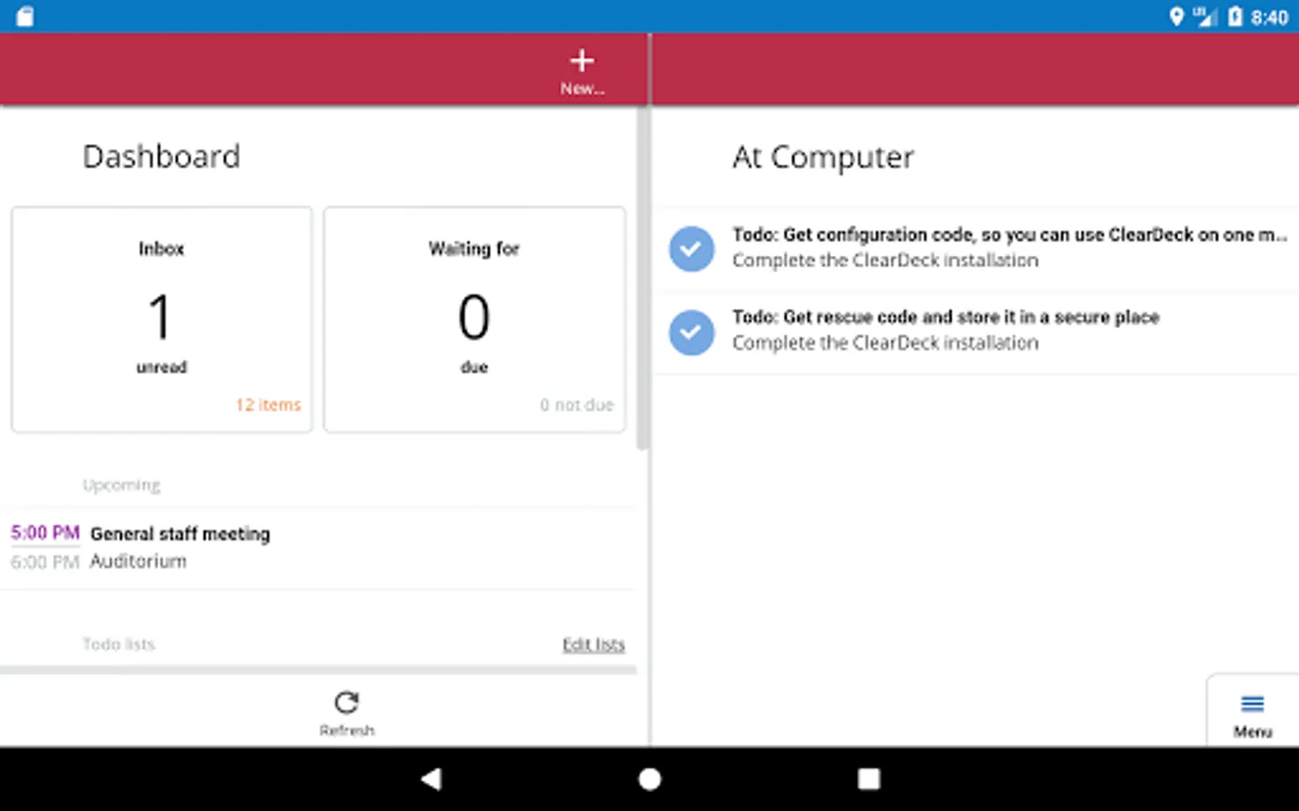 ClearDeck supports your personal productivity by integrating your Office 365 mail, calendar, contacts, and more, with a novel todo management system that provides overview and automation.