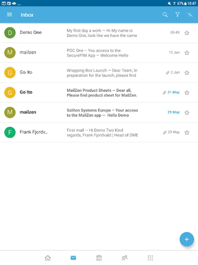 Soliton MailZen is the perfect solution to have secure access to the office workspace and applications, regardless of time and location, online and offline, without any MDM profile and restriction. All business applications and data are kept within an encrypted container. MailZen provides complete separation of business and personal data, the administrator can only control the secure container and not the private apps.