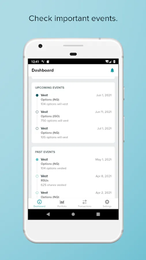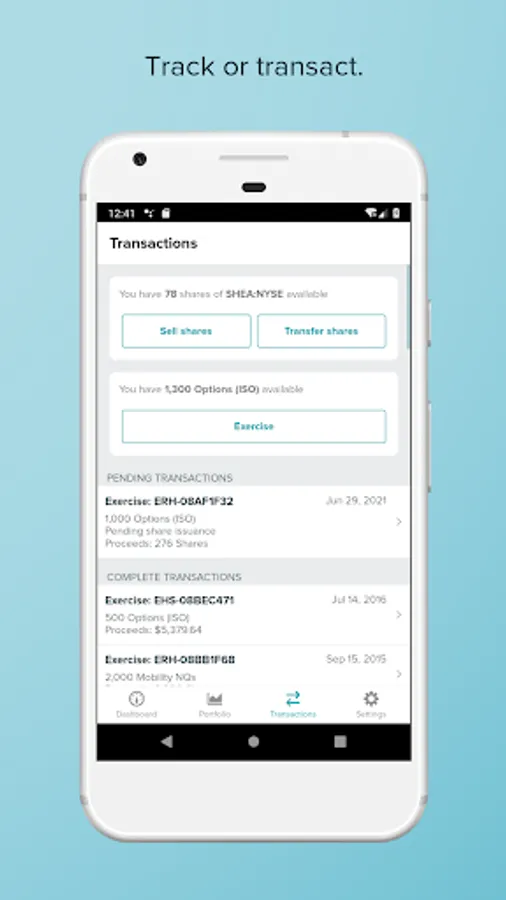 View your portfolio, upcoming events and complete transaction history. Sell or transfer shares and exercise options.