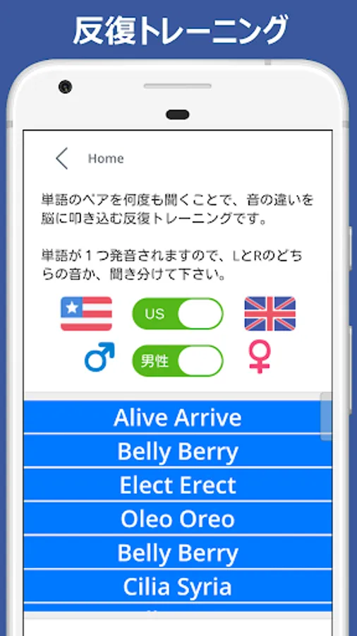 This is a training app for distinguishing L and R English words that Japanese people are not good at.