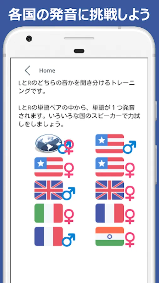 Not only listening to English tests such as TOEIC, examinations, and EIKEN, but also in practical situations such as overseas travel, business, and study abroad, I can not distinguish L and R English words, so I can not hear English conversation It is a discrimination training app for those who are.