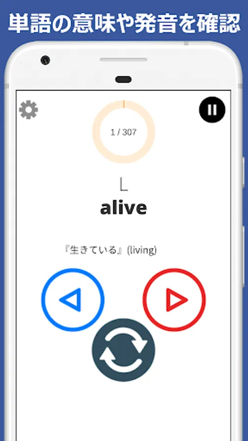 There are two modes, one for checking pronunciation and the other for Japanese translation, and a mode in which two pairs of words L and R are pronounced in order.
