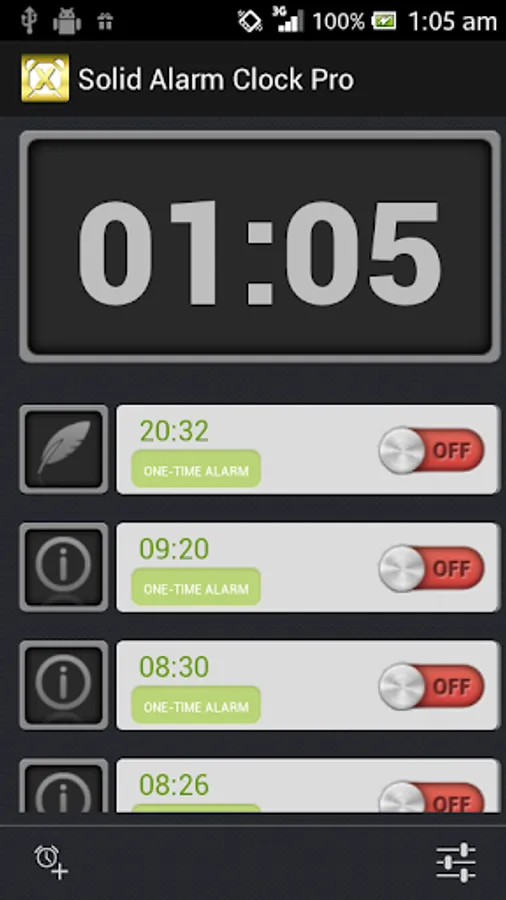 It is extended version of Solid Alarm Clock. If you want to have simplier alarm clock with less flexibility and without alarm modes you need to install Solid Alarm Clock Extended for free.