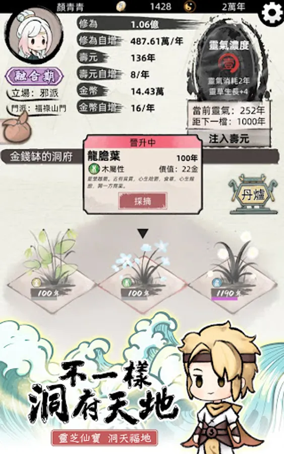 If you want to become immortal, the magic weapon is indispensable! Looking for the mysterious cave, planting fairy grass to absorb the spiritual energy, picking and eating to enhance the cultivation, or selling it in the store, the gold will be in your pocket! You can also develop spirit beasts to help you improve your cultivation, and accompany you all the way on the road to immortality!