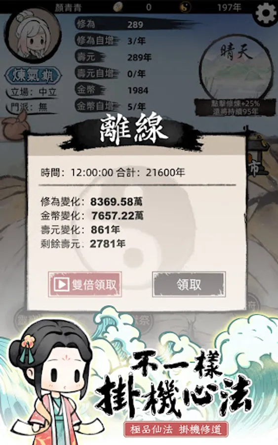 One second in the fairy world, one year in the human world, and the accumulation of ten thousand years of cultivation base is exchanged for the transcendence of calamity. Want to improve longevity and longevity? Or make a million gold in seconds and become a billionaire? Hanging up determines the training speed, placing it determines the timing of transcending the calamity, and leaving everything to the heart and destiny!