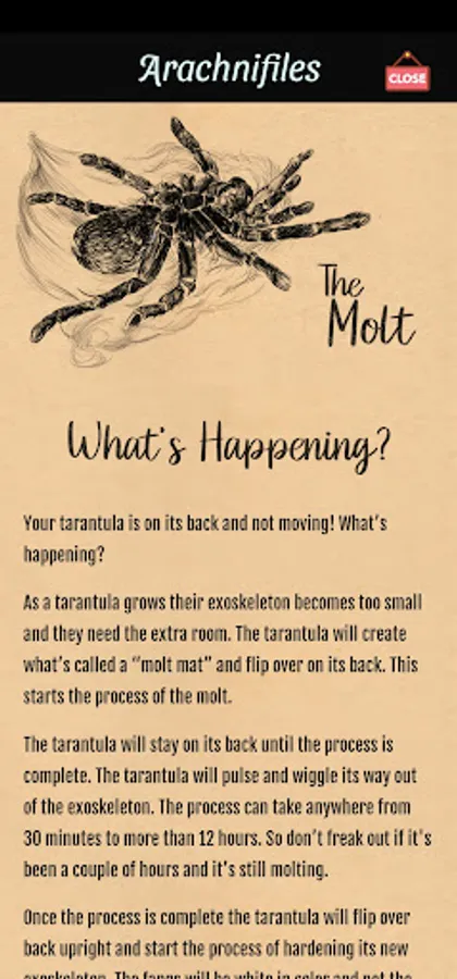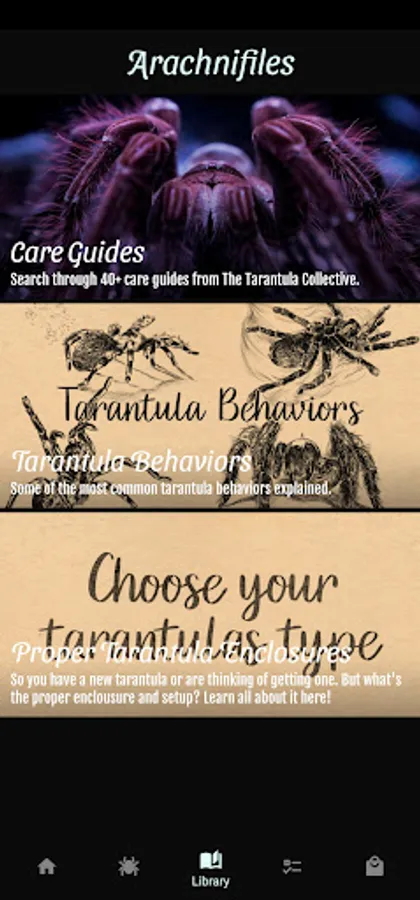 But that's not all! Thanks to our partnership with The Tarantula Collective, Arachnifiles provides access to over 40+ care guides right at your fingertips. And if that's not enough, supporting videos are also available to help you care for your pets like a pro!
