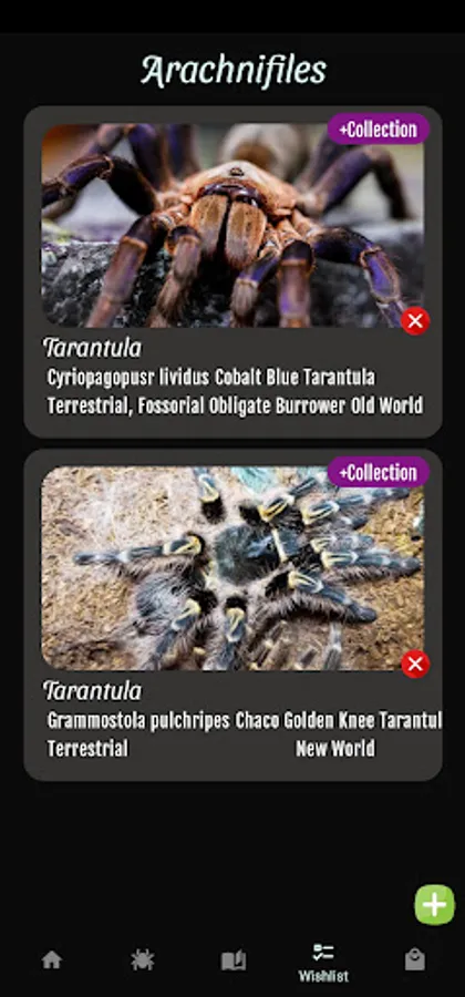 Do you have a never-ending wishlist of inverts you want to add to your collection? No worries, Arachnifiles has got you covered! With our wishlist area, you can add and track all the inverts you dream of owning.