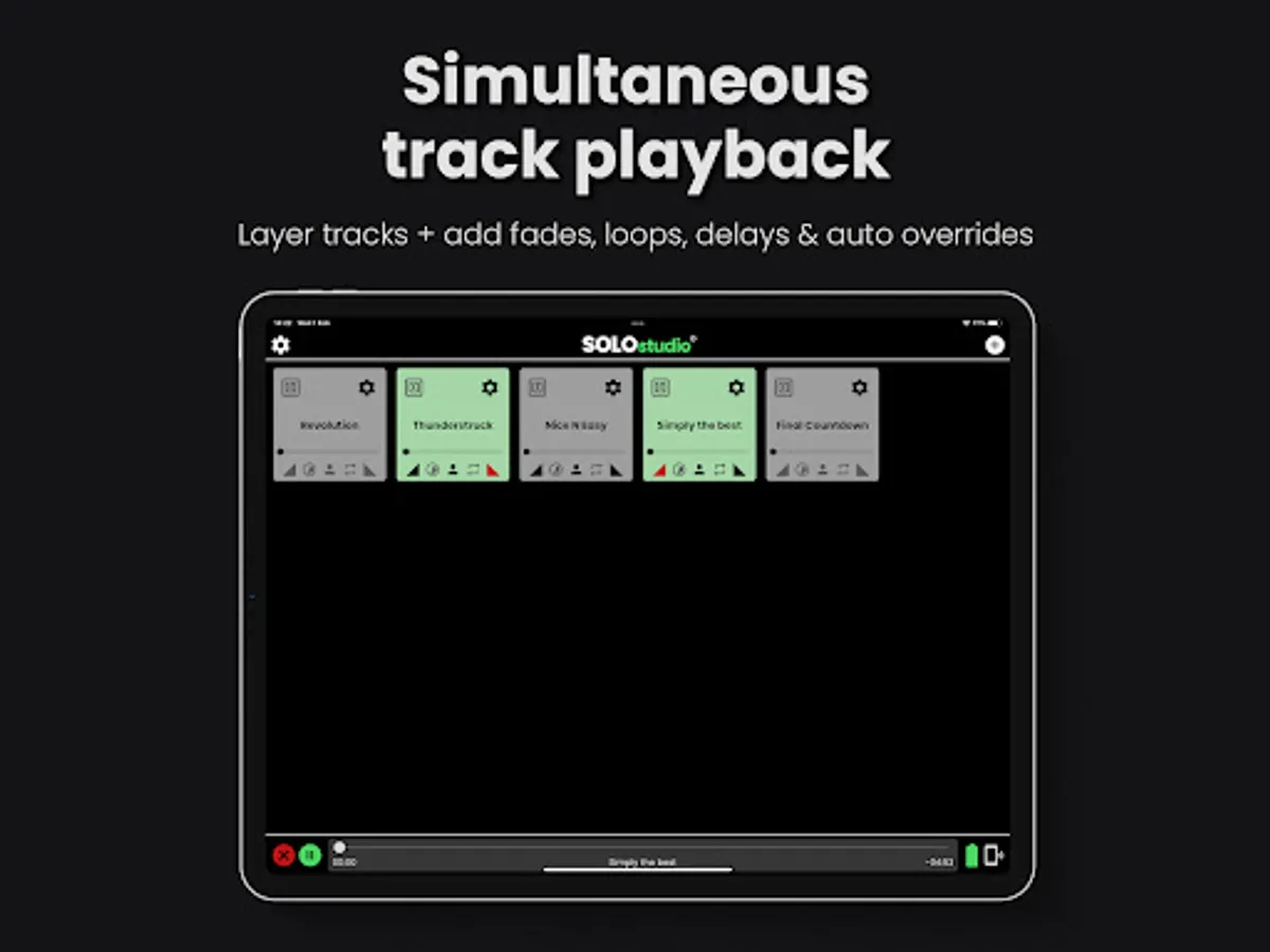 With 'tap to play' track tiles, SOLOstudio couldn't be simpler to use and what's more... It's COMPLETELY 3RD PARTY AD FREE.