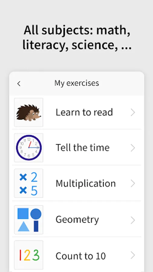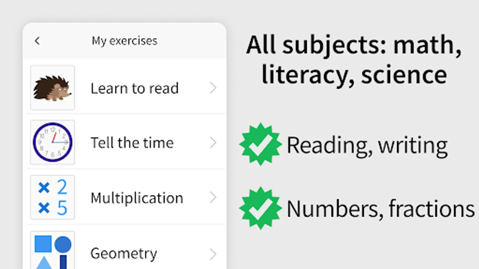 ▸ JOYFUL LEARNING: over 100,000 exercises, 200 interactive exercise types, explanations and learning games.