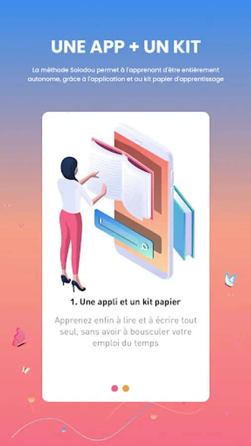 Solodou is a literacy application that helps adults learn to read and write independently. It is simple and playful. It comes in addition to a kit containing a reading manual, a writing manual, a getting started guide, a case, a pencil, an eraser and a pencil sharpener. Thanks to the hundreds of integrated fun games, the learner can test and consolidate his new knowledge. Thanks to Solodou, you learn quickly and well, at your own pace without any external pressure; and you can clearly see, for yourself, its clear progression.