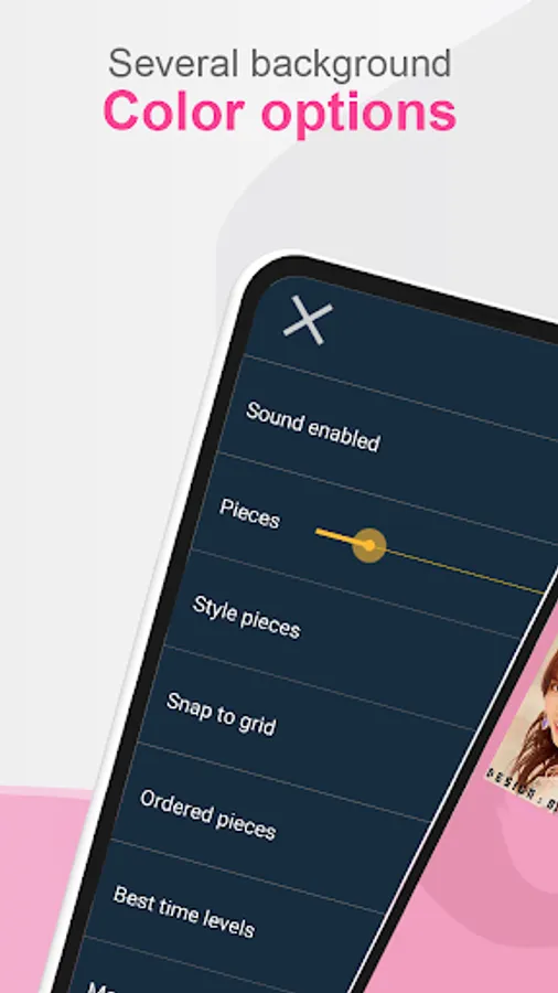 β Set advanced settings (sound, picture, puzzle piece, background color,...), create a sense of comfort for the player
