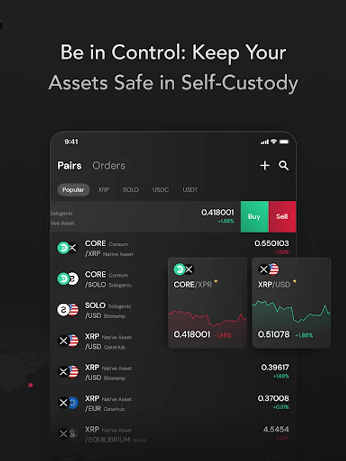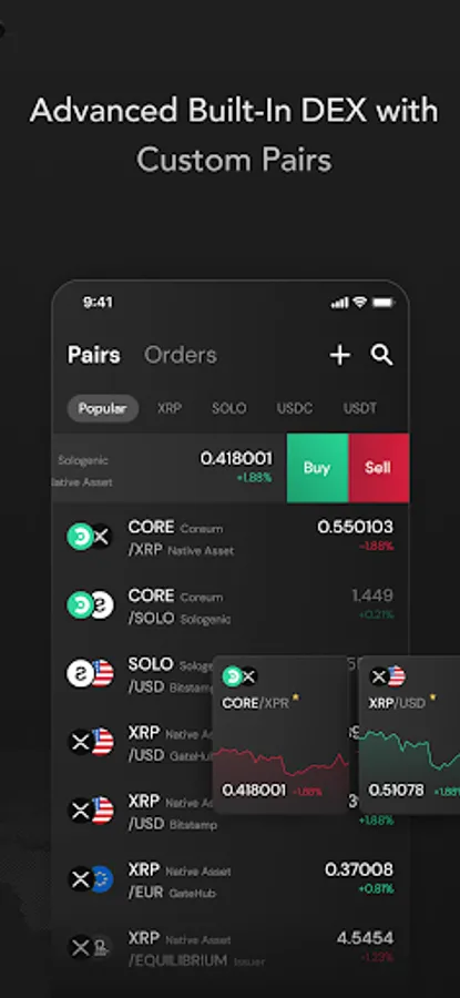 - Trade 24/7 with the Sologenic DEX inside of the app