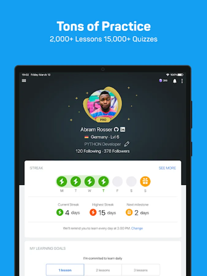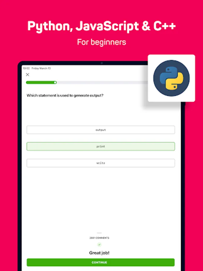 Take your first steps to become a code developer or level up your career with our coding academy. Earn a certificate for each course you finish, from Python to C++, SQL to Java. Showcase your coding skills and share your Sololearn academy certificate on LinkedIn to uplift your tech career. Sololearn makes learning to code fun!