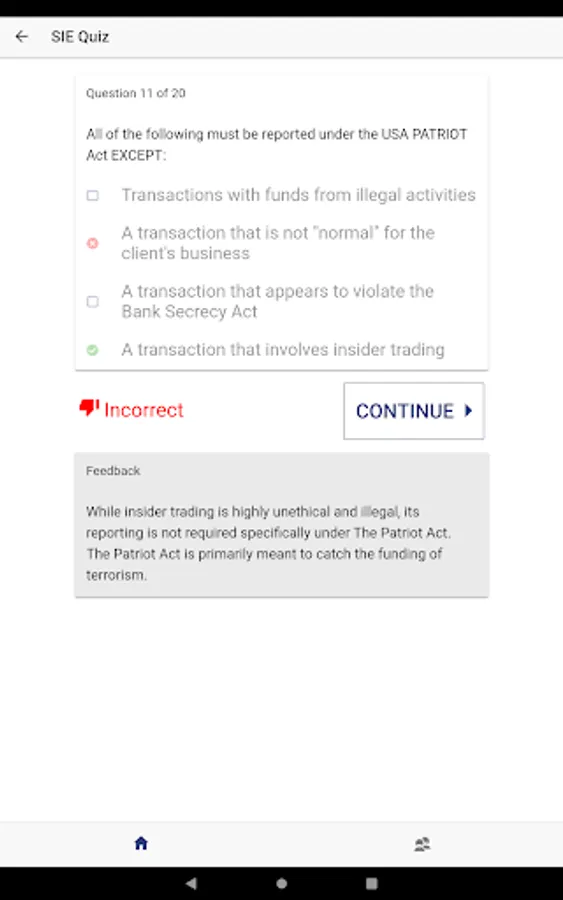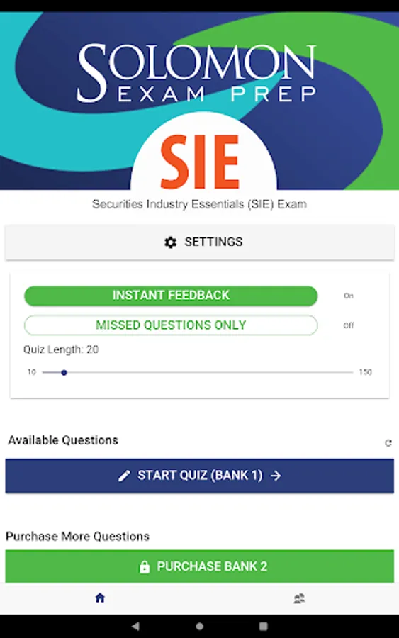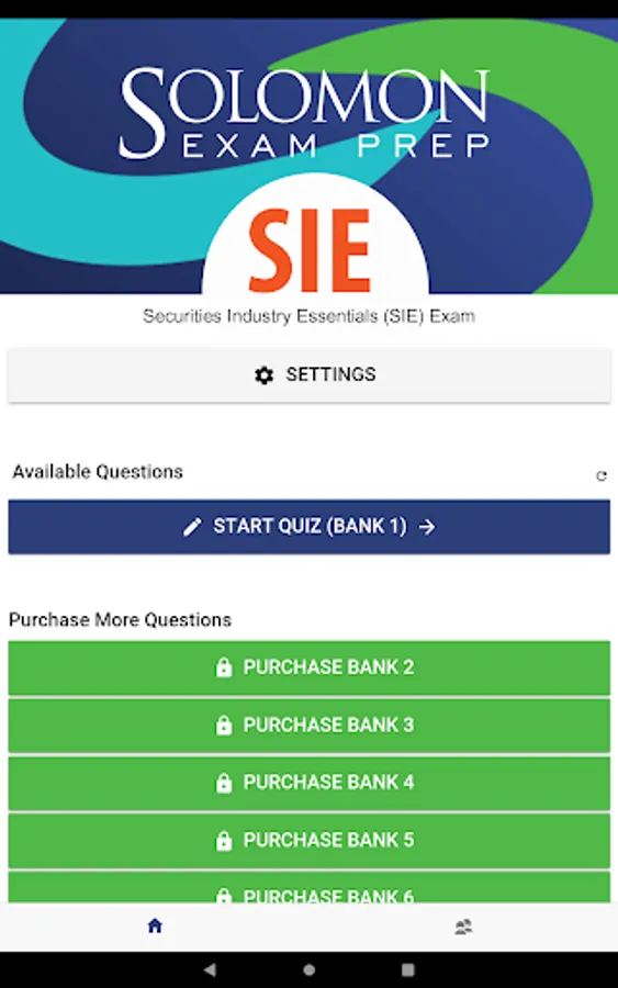 The Solomon Exam Prep Securities Industry Essentials (SIE) exam app offers individuals studying for the SIE exam 150 high-quality practice questions, with robust rationales, in a simple and highly effective practice app. The Solomon SIE app offers the option of instant feedback and the ability to retake questions you get wrong.