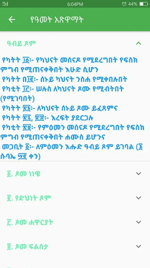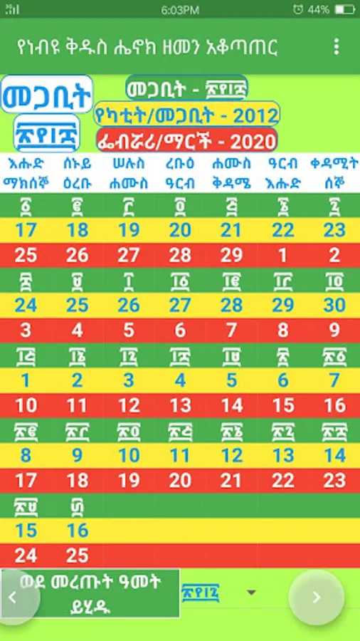 አመቱ 364 ቀናት (52 ሳምንታት ብቻ) ስላሉት በአላት አጹዋማት ሁሌም ቀናቸዉን ሳይለውጡ ጸንተው ይኖራሉ። ለምሳሌ ጥንተ ብርሃነ ልደቱ ታህሳስ 17 ማክሰኞ ላይ ከዋለ ሁሌም በየአመቱ ታህሳስ 17 ማክሰኞ ይውላል።
