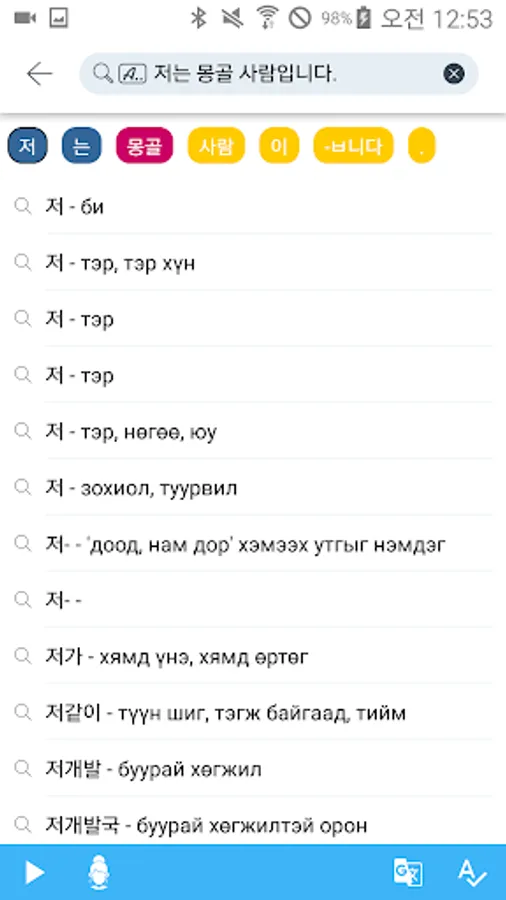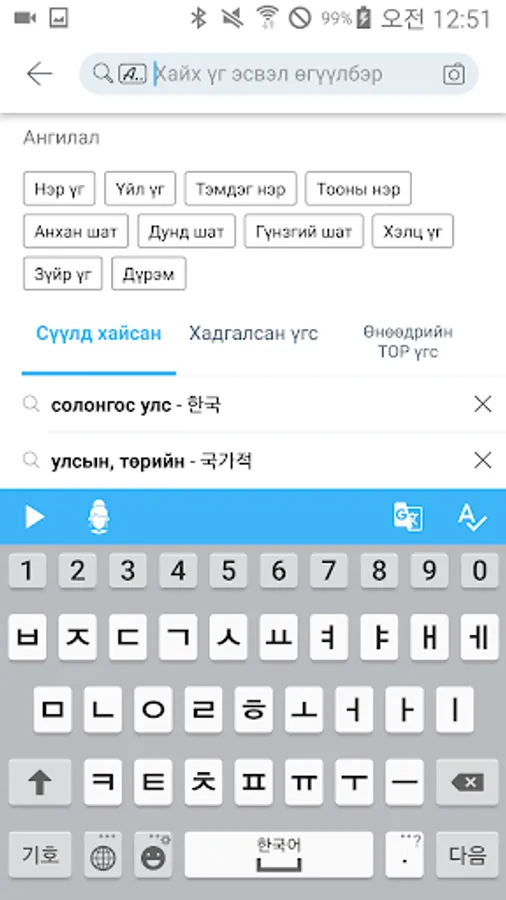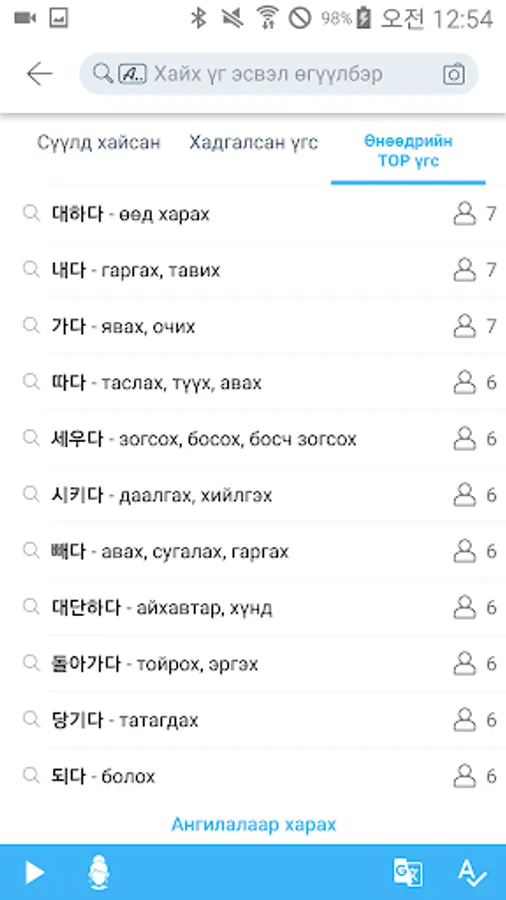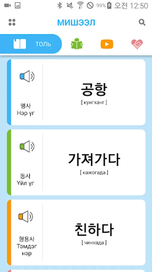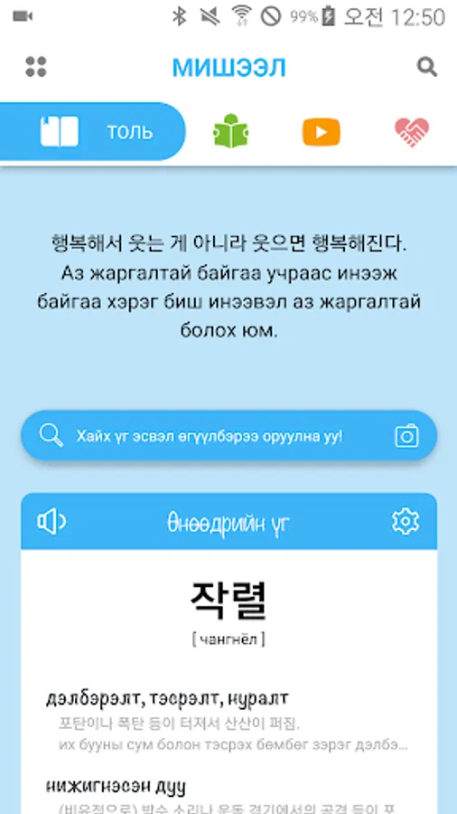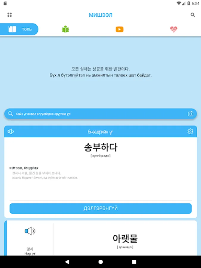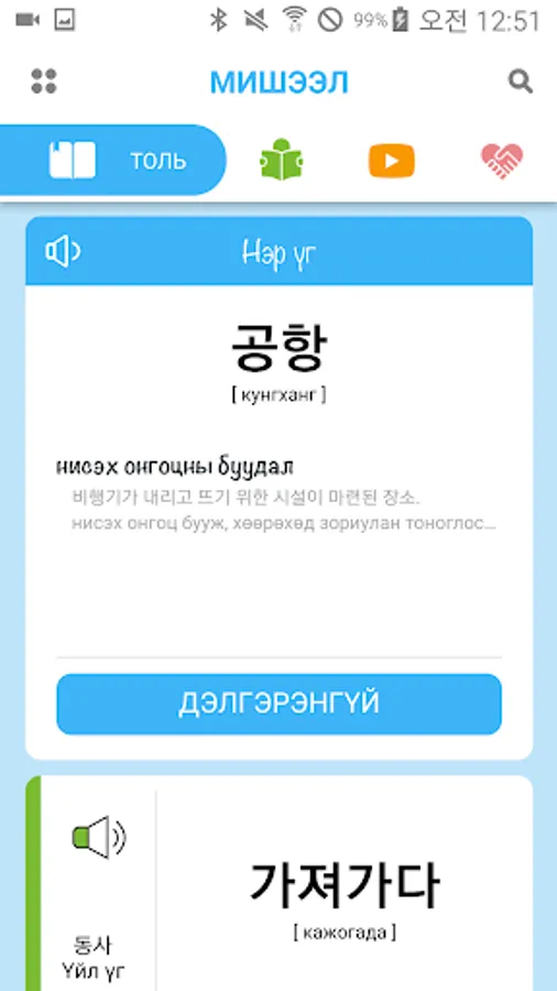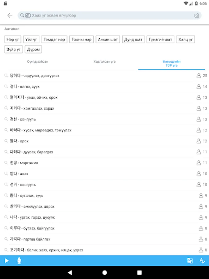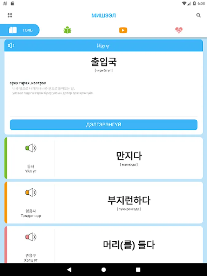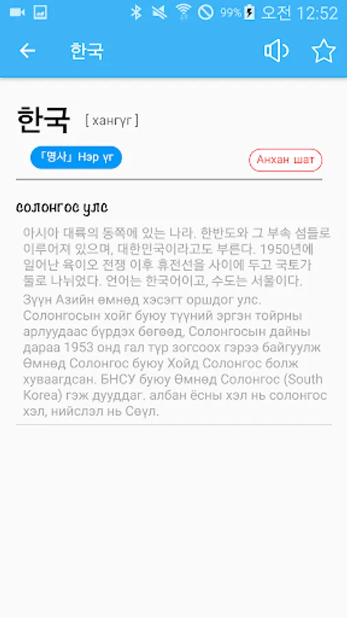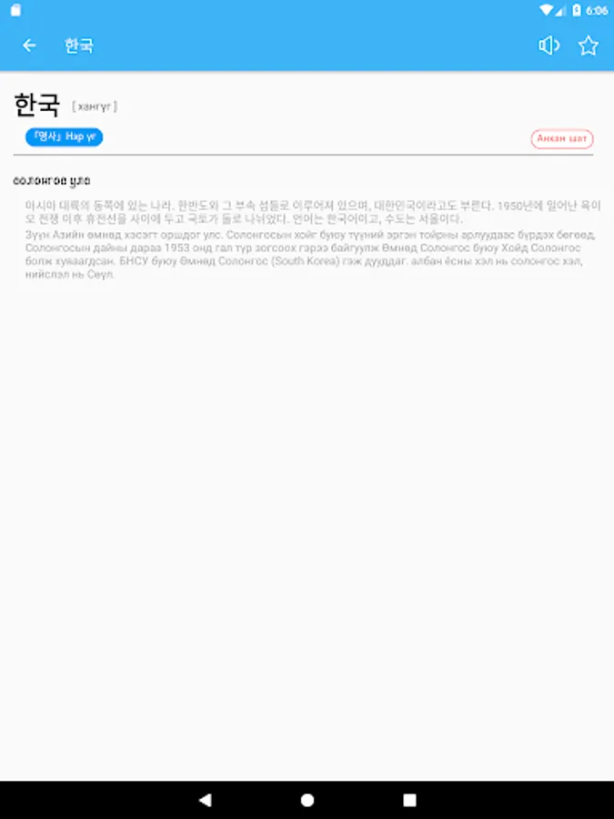 Vocabulary - Korean Mongolian dictionary app containing around 50 thousand words of beginner, intermediate, advanced levels
