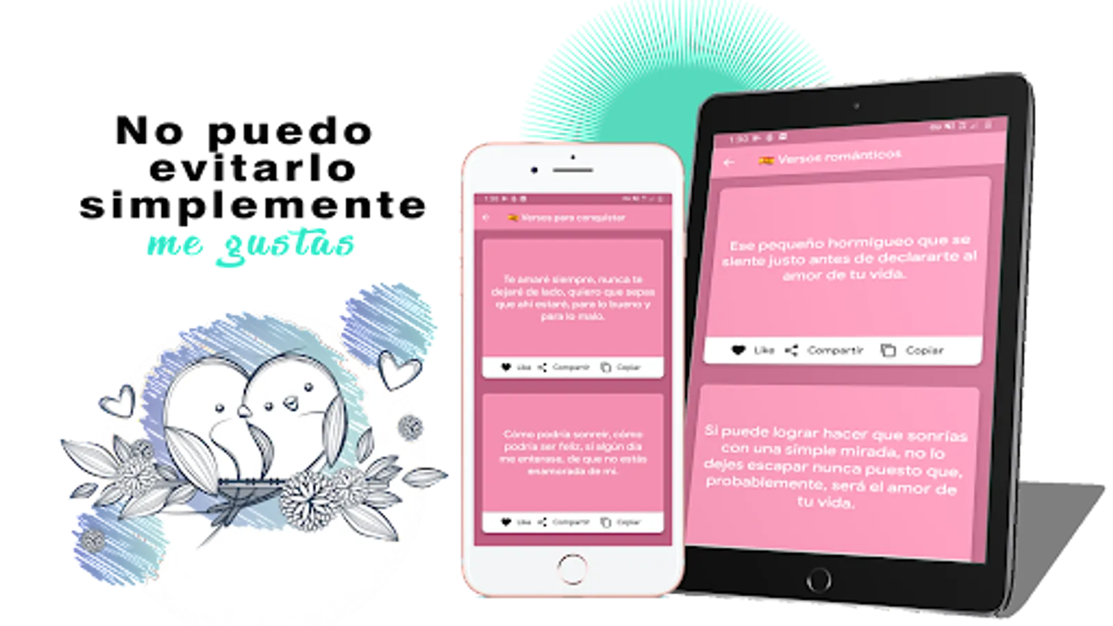 Sometimes it is difficult for us to express how in love we are and how to transmit what we feel with love phrases to conquer that person who has stolen our hearts, for this reason we share this application, phrases to conquer that will do much more easy to express everything you feel. You can find phrases to conquer and images to fall in love which you can share with that person so important to you.