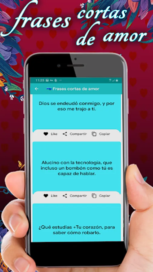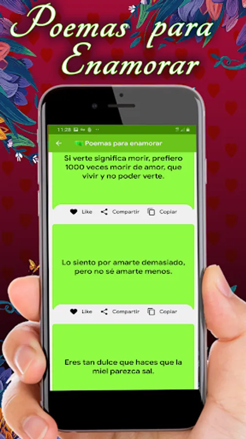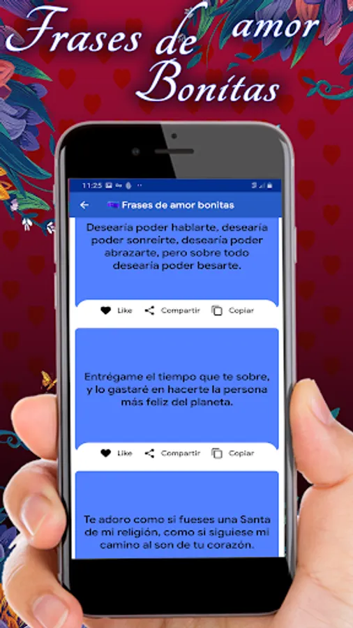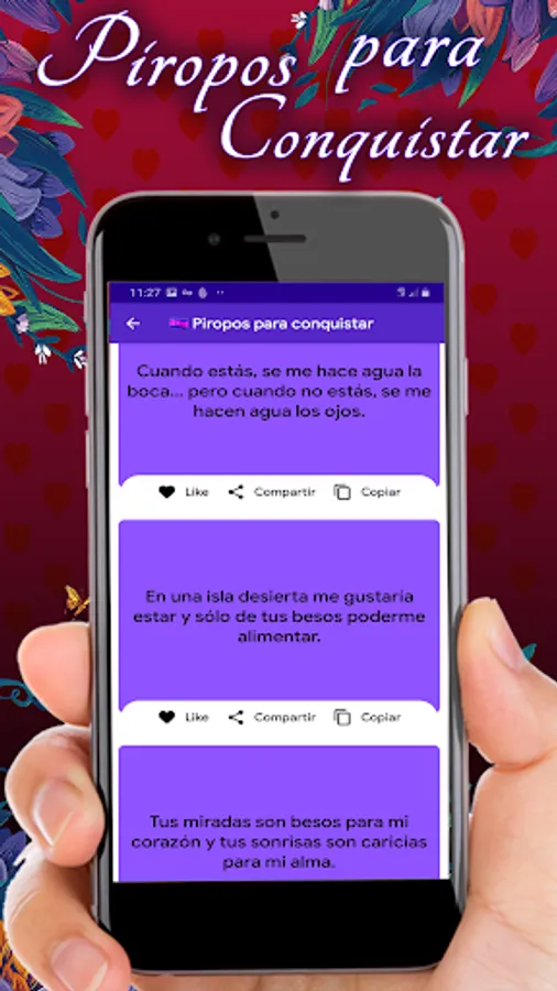 Love phrases to fall in love, since you can find the collection of phrases to make a woman fall in love or phrases of love to make a man fall in love. We all want to receive love poems or friendship poems. Sometimes it is difficult for us to express how much we are in love and how to transmit what we feel with love phrases to conquer that person who has stolen our hearts, for this reason we share this application, phrases to conquer that will do much more easy to express everything you feel. You can find phrases to conquer and verses to fall in love which you can share with that person so important to you. A great collection of phrases to make a woman fall in love with beautiful verses with which you can surprise and love that girl. On the contrary you will also find Phrases to conquer a man, so that you can also surprise that special boy. They are phrases of love with beautiful verses that any person will like to receive, feeling flattered with phrases that are born from the heart and that our application phrases to conquer will facilitate you. Conquering a woman is sometimes difficult but we are sure that with the great collection of Phrases to conquer a woman you can reach your goal. It is very nice to feel in love and live that romance with that ideal person, but more beautiful is to express your feelings, either with a poem a compliment to fall in love or a simple phrase to conquer, no matter the way the end is the same as it is to fall in love with that special person. Conquering a man can also be complicated and if he is shy much more, but with the phrases to conquer a man you will achieve it! In phrases of love and beautiful verses you will find the best phrases in images for love, friendship or for your life, we hope they are useful to face your day with a smile. You can use these phrases for whatsapp, facebook or the social network of your choice. Who does not like to receive messages of love, friendship or positive for life, animate and share these phrases of love and beautiful verses in images your loved ones, friends and the person you love.