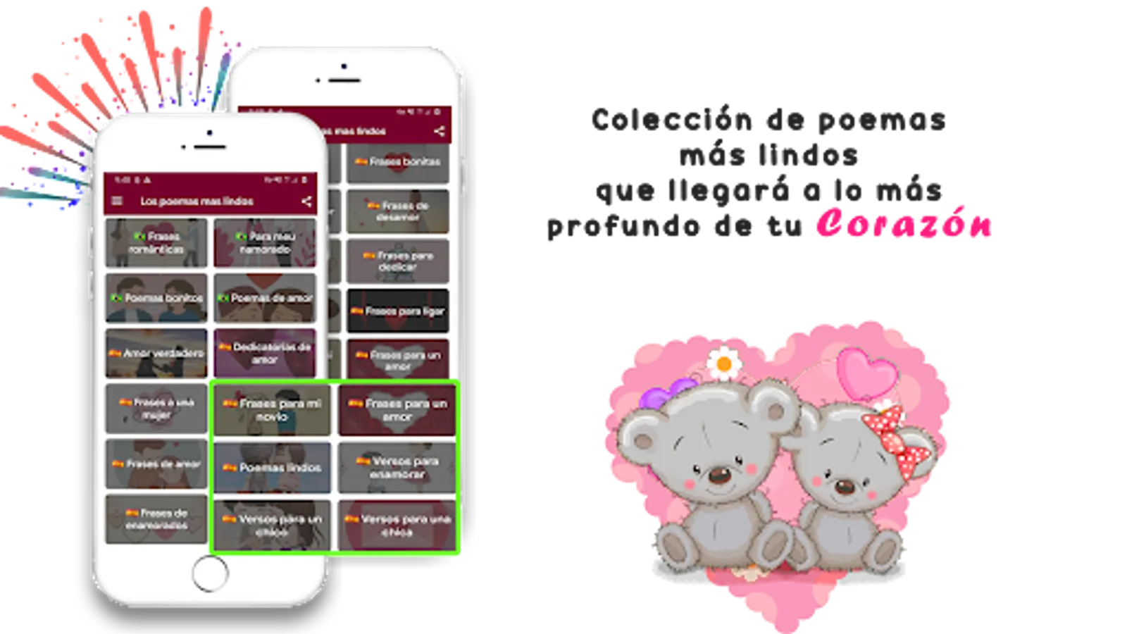 Your new and exclusive love poems app to share in your favorite network whatsapp with the best love poems, poems and verses to make a woman fall in love, poems to make a man fall in love with a selection of the most beautiful poems and love verses and romantic, so you can share on all your social networks like Facebook, Messenger, whatsapp among others share with the people you love most, your friends, family or the love of your life through your favorite social networks. Are you looking for inspiration for your love letter? Are you going to send a message to who you love? Well, if so, this application of love poems is for you. Love poems your best application with short poems of love and friendship you will only find poems that truly fall in love and steal a sigh from those who receive it. Do not hesitate to give a poem or verses of love more beautiful and romantic, to fall in love with that boy or boy that has you crazy love so the love of your life will always be by your side. You do not know how to start falling in love, do not worry for you we have selected the best phrases for love, friendship or for your life, we are sure that you will be able to fall in love with the love of your life and steal a smile every day