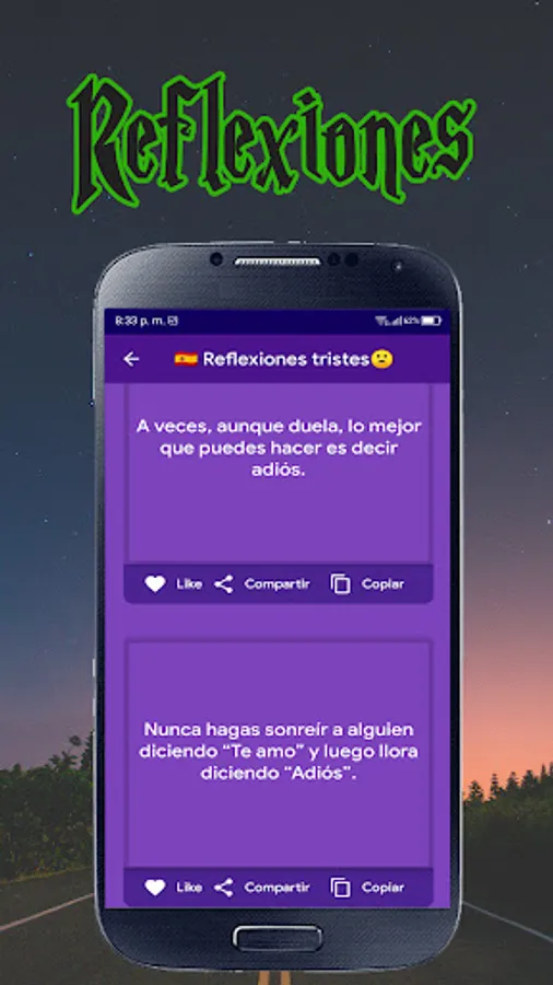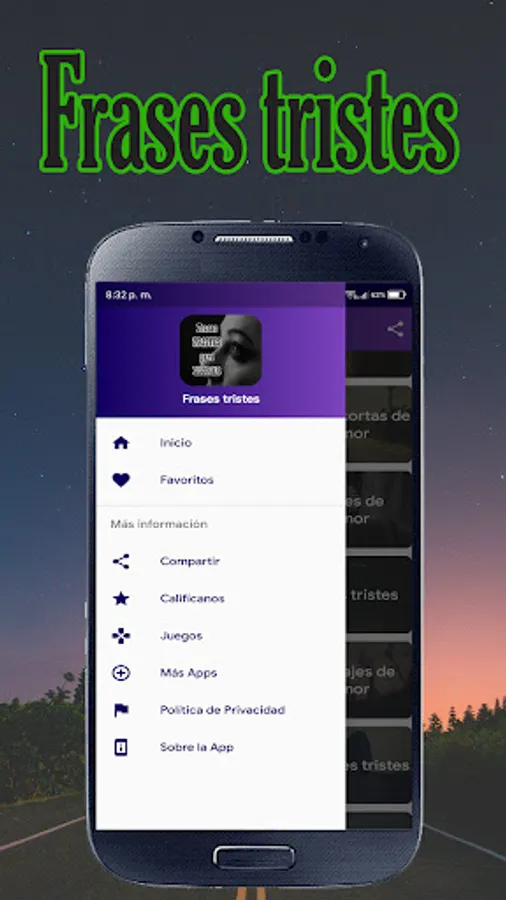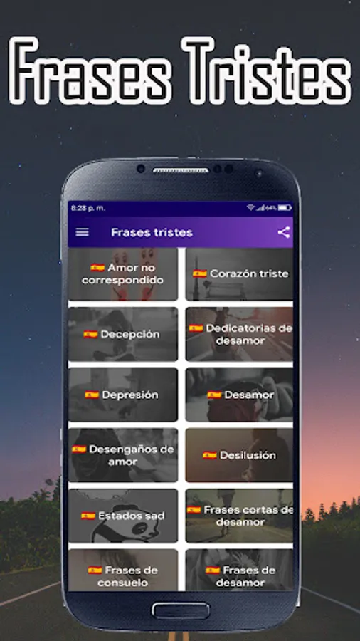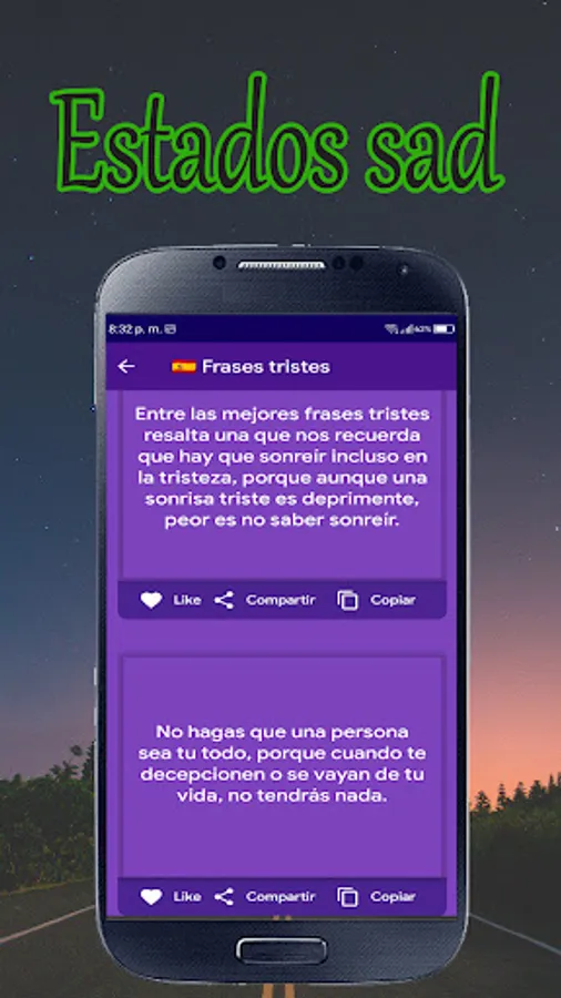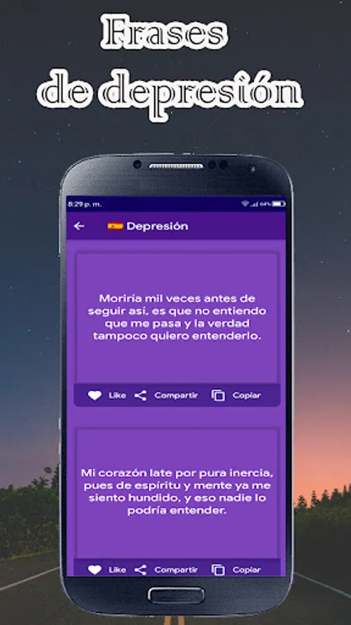 Periodically, the application will be updated with new and original phrases and images of sadness and pain that will help you say what you feel through social networks.