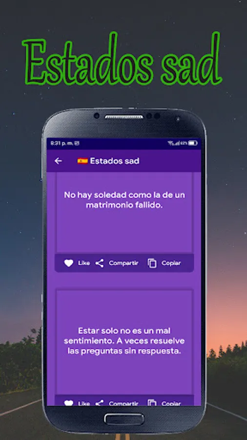 The application is created with authentic sad phrases of love full of feeling, nostalgia and deep sadness, which are the feelings that overwhelm us when we have lost a love, that couple that we want to return or remember with nostalgia.